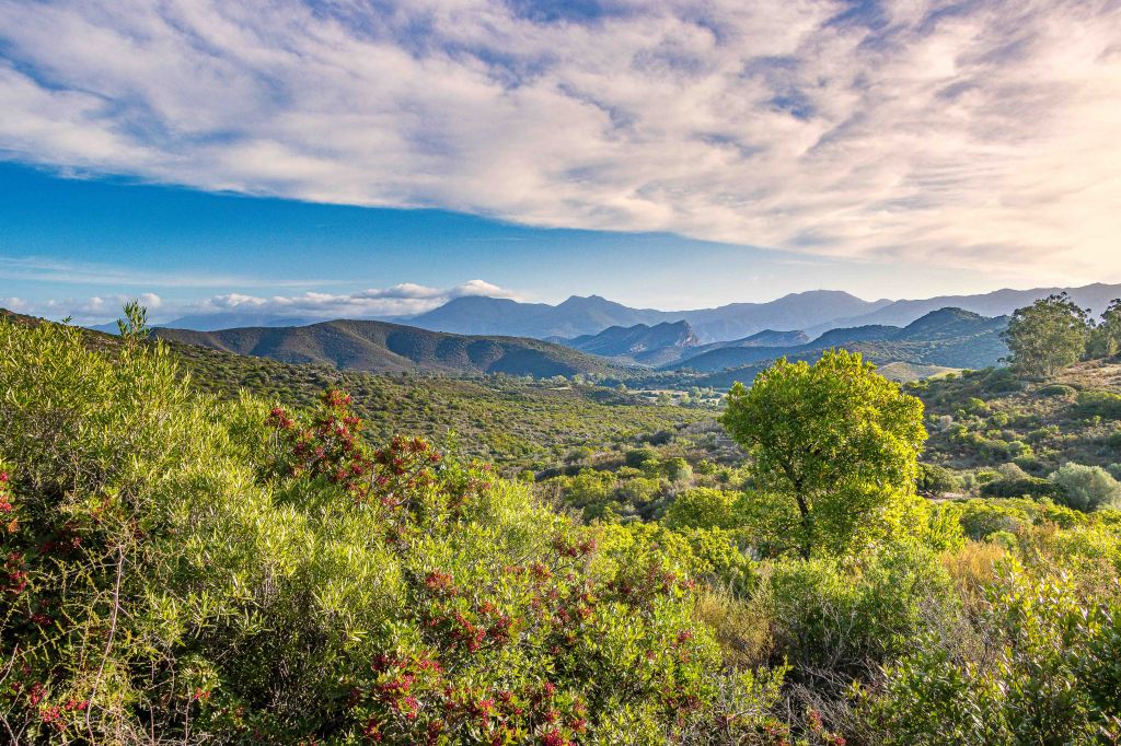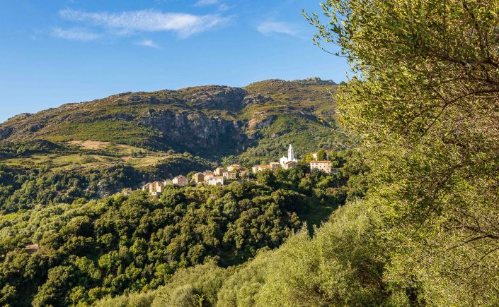 In SAINT-FLORENT kennen wir mittlerweile den Bäcker als auch den Supermarkt. Wieder mit dem Nötigsten versorgt, drehen wir eine Runde durch das NEBBIO. Entgegen seinem Namen wölbt sich heute ein strahlend blauer Himmel über die muschelförmige Beckenlandschaft. Der weite Talkessel ist von runden, mit immergrüner Macchia überzogenen Hügeln umgeben. Auf halber Höhe reihen sich Ortschaften wir eine Perlenkette aneinander, die meisten überragt von einer großen Kirche. Einst machte die Landwirtschaft die Gegend reich, davon ist heute nicht viel geblieben. Ein paar Kühe weiden auf dem kargen Grün, weit und breit sind keine bestellten Felder zu sehen. Dennoch sind die meisten Häuser in den Dörfern gut restauriert, nur wenige Ruinen stehen an der meist schmalen Straße.