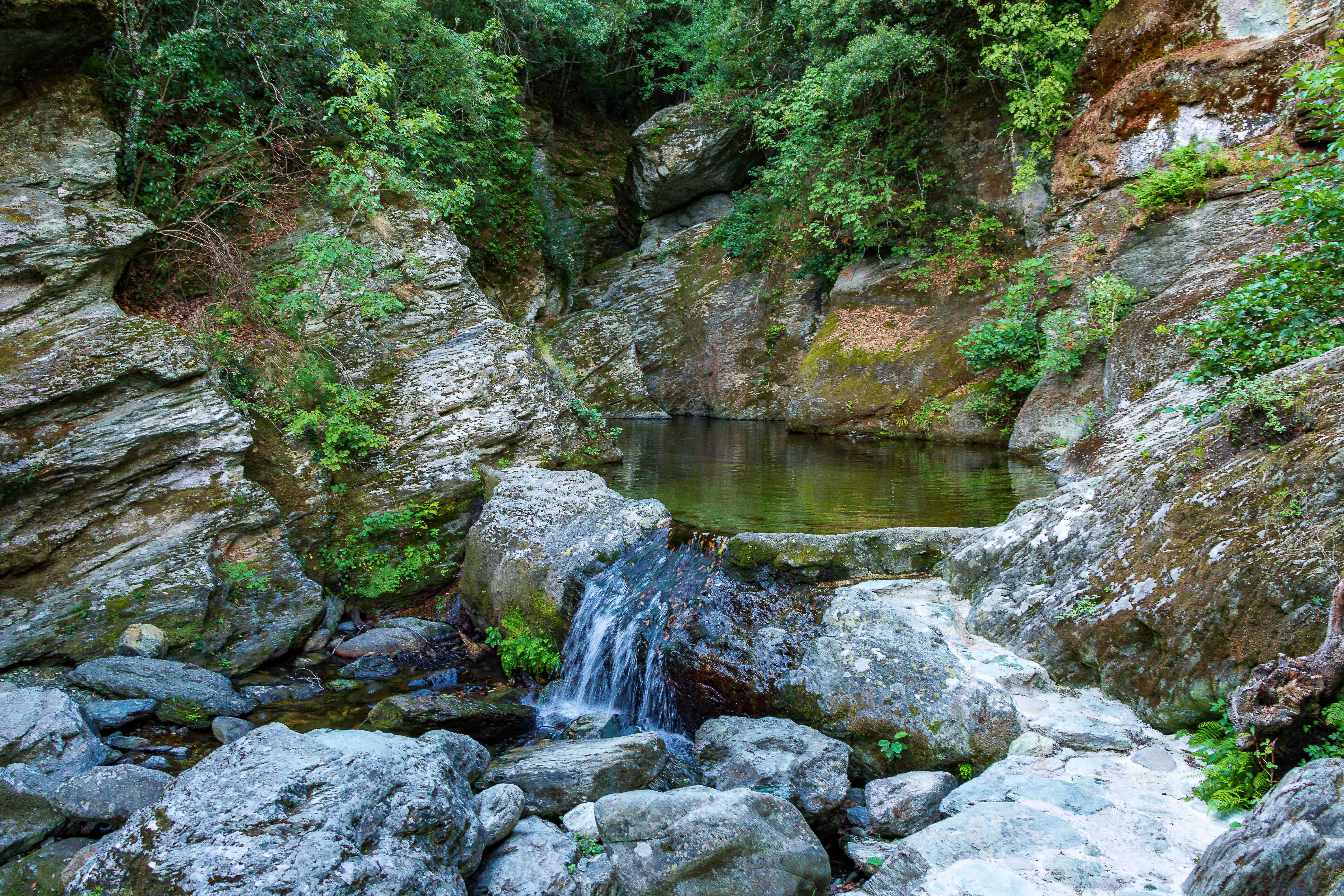 Wir finden eine Gumpe mit glasklarem und kalten Wasser für ein erfrischendes Bad, die Kindergartenkinder machen ihre ersten Versuche im Schwimmbad.