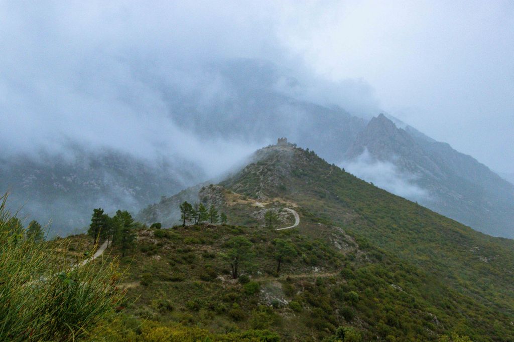 Der Morgen in CALVI beginnt mit einem grauen Himmel, es regnet und es ist kalt. So machen wir uns auf den Weg zum Meer. Immer ein wenig unter den tief hängen Wolken fahrend, erreichen wir am Mittag den COL DE VIZZANOVA. Hier vespern wir erst einmal, bis uns Kälte, Wind und Regen weitertreiben.