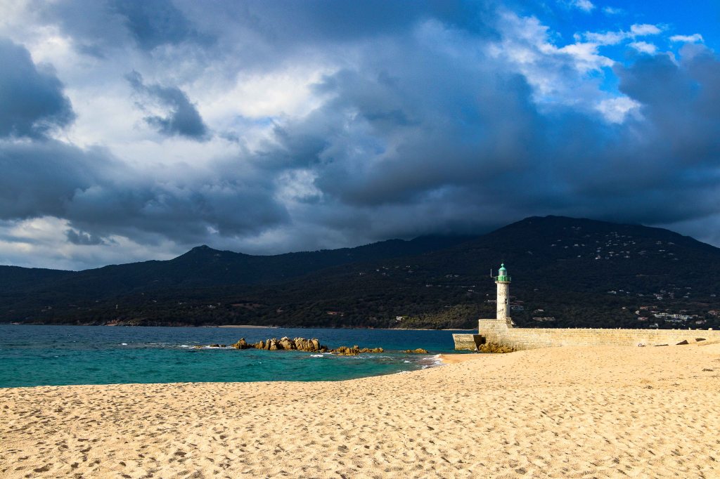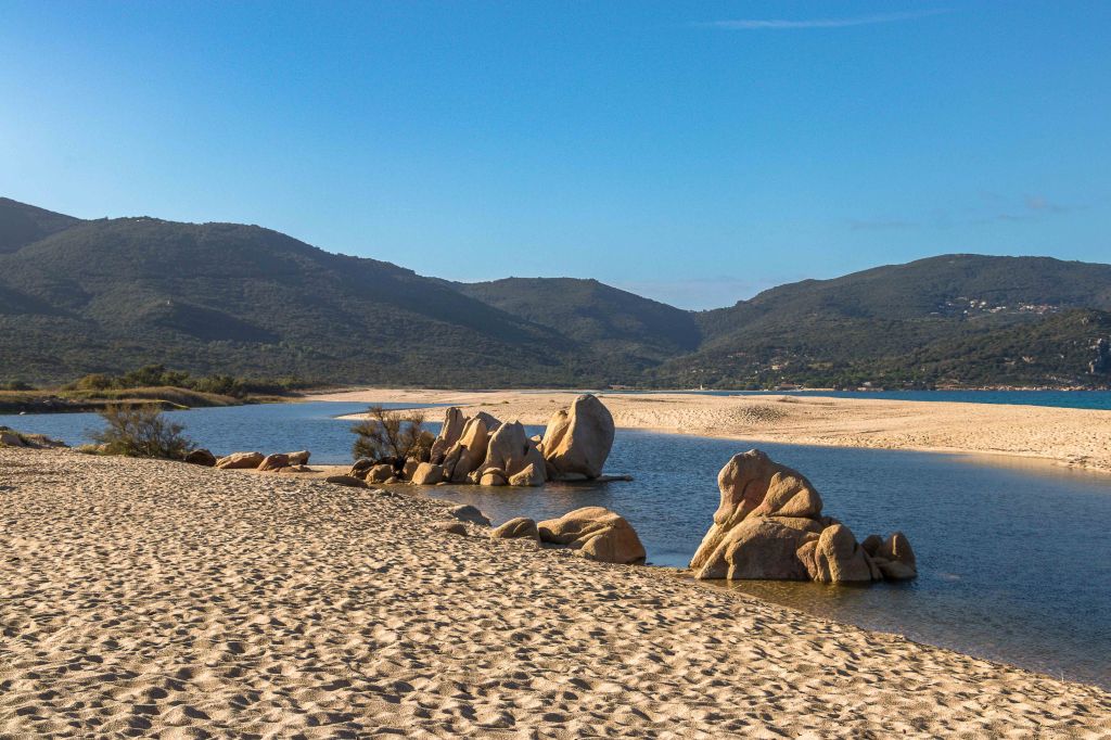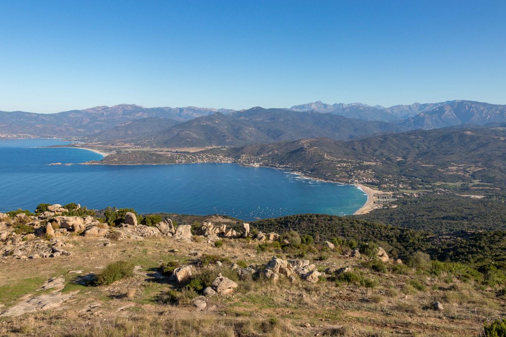 Da wir hier nicht bleiben wollen, erklimmen wir wieder den Pass und rollen hinunter zum GOLF VON AJACCIO. Wieder dem WOMO-Führer folgend finden wir kurz vor dem Flughafen bei RICANTO einen staubigen Parkplatz direkt am blauen Meer. Hier ist mächtig was los: Kiter und Surfer flitzen über die kleinen Wellen, Jungs spielen Beachfussball und viele Sonnenhungrige liegen am weiten Strandrund. Abends stehen wir mit einem französischen Wohnmobil alleine auf dem Platz.