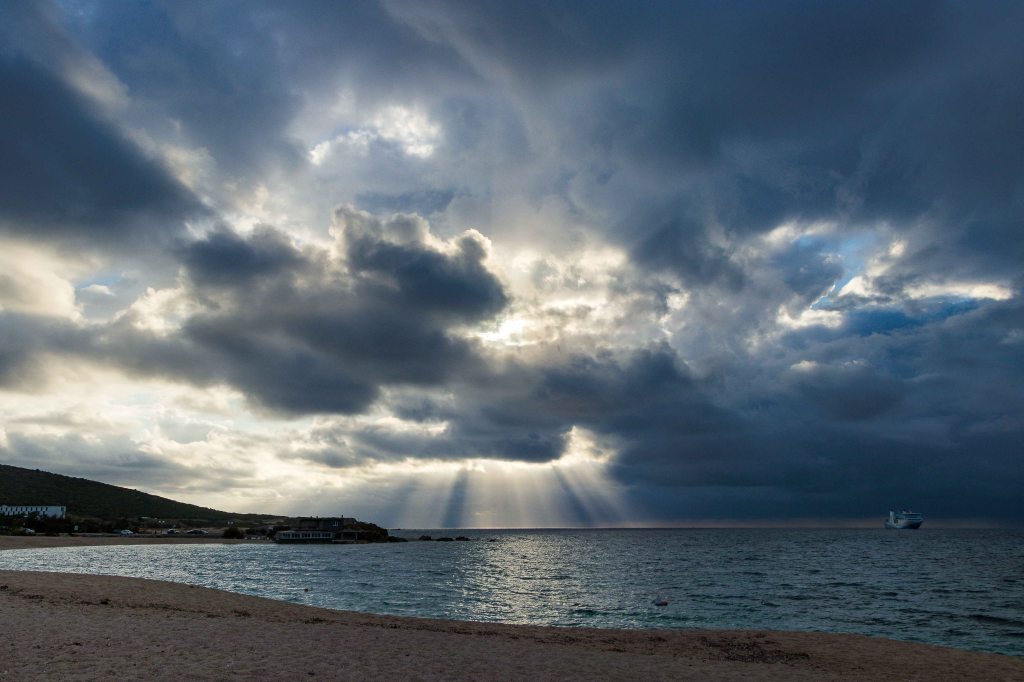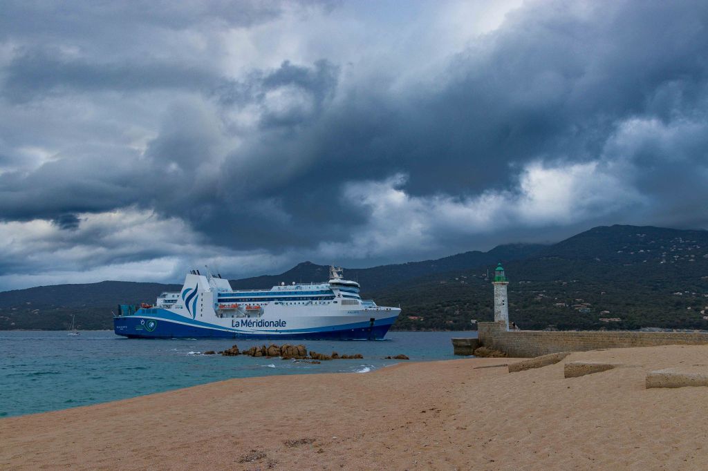 Am Nachmittag nimmt der Wind zu, die Wellen verleiden uns ein Bad und dicke Wolken ziehen auf, die später sogar ein paar Regenschauer mit sich bringen. Eine Fähre wird von einem Lotsen in den Hafen geleitet, in der beginnenden Dunkelheit fährt sie wieder weiter, wahrscheinlich nach Marseille.