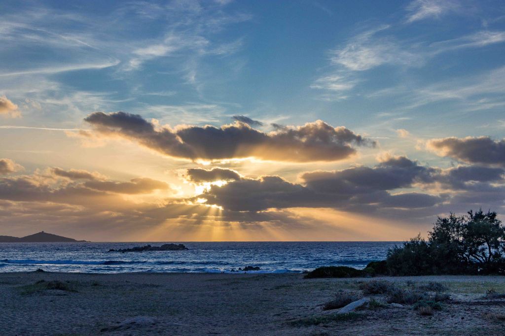 Nach dem Regen folgen am Morgen wieder ein blauer Himmel und ein frischer Westwind. Wir kaufen ein und fahren nur wenige Kilometer bis zur PLAGE DE CAPU LAUROSU. Hier vertreibt uns kein Verbotsschild. Der Strand ist zwar ein paar Schritte über den grobkörnigen Sand entfernt, doch der kühle Wind und die hohen Wellen halten uns eh von einem Bade ab.