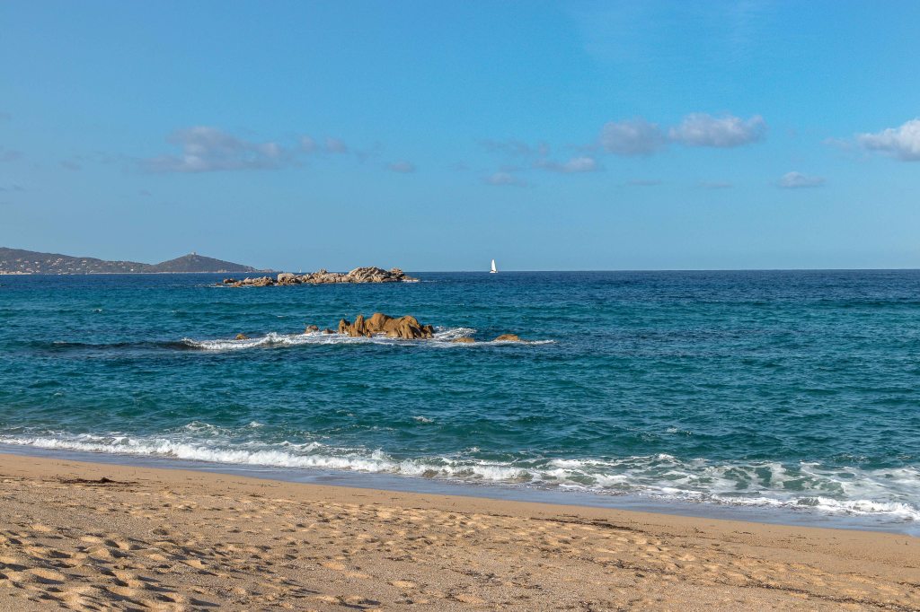 Eigentlich wollte Peter noch eine Wanderung unternehmen, doch bei der Suche nach einem Übernachtungsplatz kommen wir immer weiten in den Süden. Zwischen den vielen Klippen gibt es nur wenige Strände, die meisten davon sind von Campingplätzen, Hotels oder Feriensiedlungen versperrt. Unsere Siesta halten wir auf einem großen Parkplatz mit angrenzenden Fußballfeld, das schon lange keinen Spieler mehr gesehen hat. Ein neu angebrachtes Verbotsschild für Wohnmobile lässt uns weiterfahren. So kommen wir nach PROPRIANO, wo unerwartet am Hafen, direkt an einem grobsandigen weiten Strand, ein freier Platz ohne jegliches Verbot auf uns wartet.