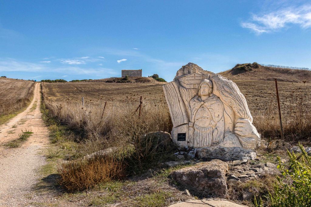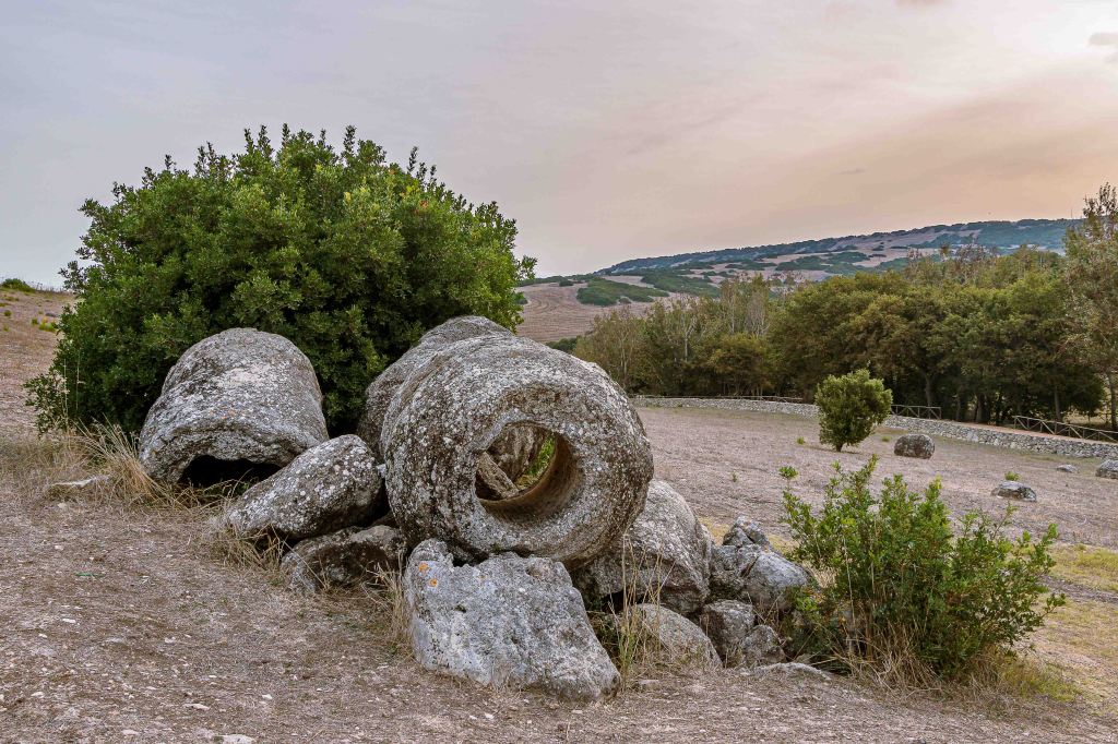 Am Weg liegt der markante ROCCIA DELL’ELEFANTE. Der allein in der Ebene stehende, meterhohe Fels aus vulkanischem Trachyt verwitterte über die Jahrtausende zu der eigentümlichen Form und ähnelt wirklich einem Elefanten. Der bizarre Fels diente den Nuraghern vor über 3000 Jahren als Kultstätte, in der sie die Ascheurnen ihrer Toten beisetzten.