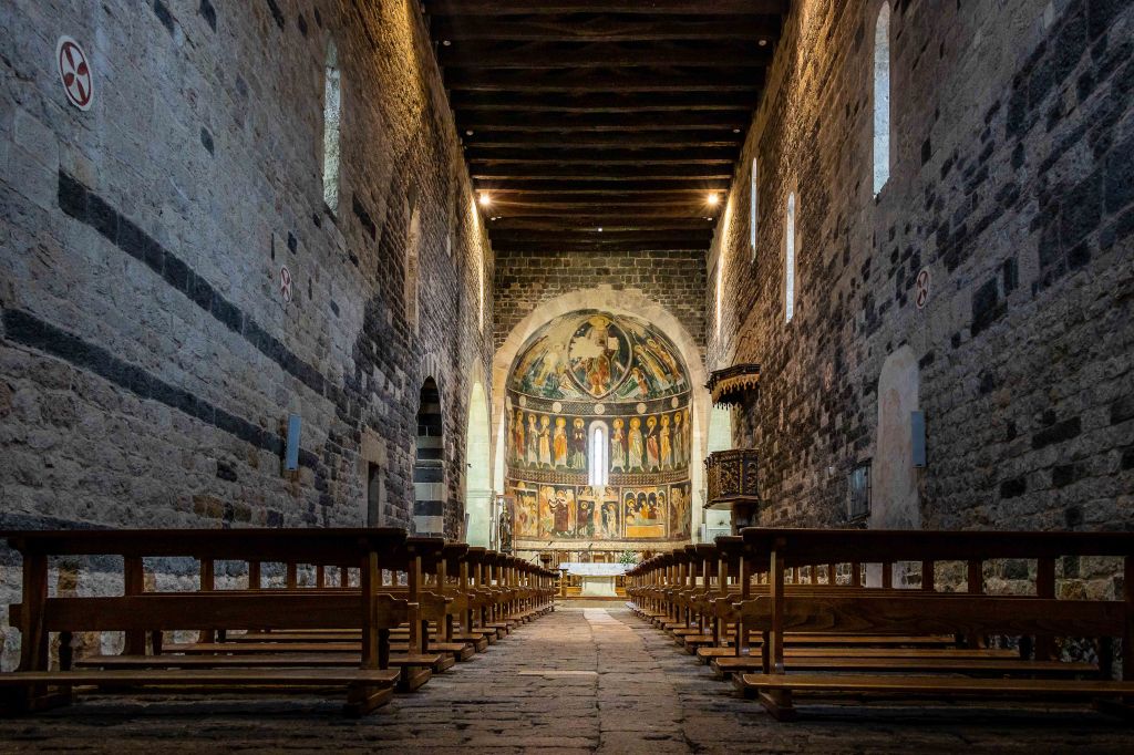 Weit verstreut in der kargen Landschaft stehen unzählige Kirchen: im Tal, auf runden Hügeln und am Rand der wie ausgestorben wirkenden Dörfer. Wir besuchen einige, doch es gäbe noch viel mehr anzusehen. Die meisten von ihnen sind im toskanischen-pisanischen Stil erbaut, mit den typischen weißen und schwarzen Streifen aus Kalkstein und Basalt.