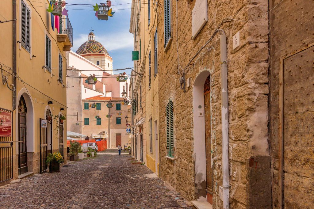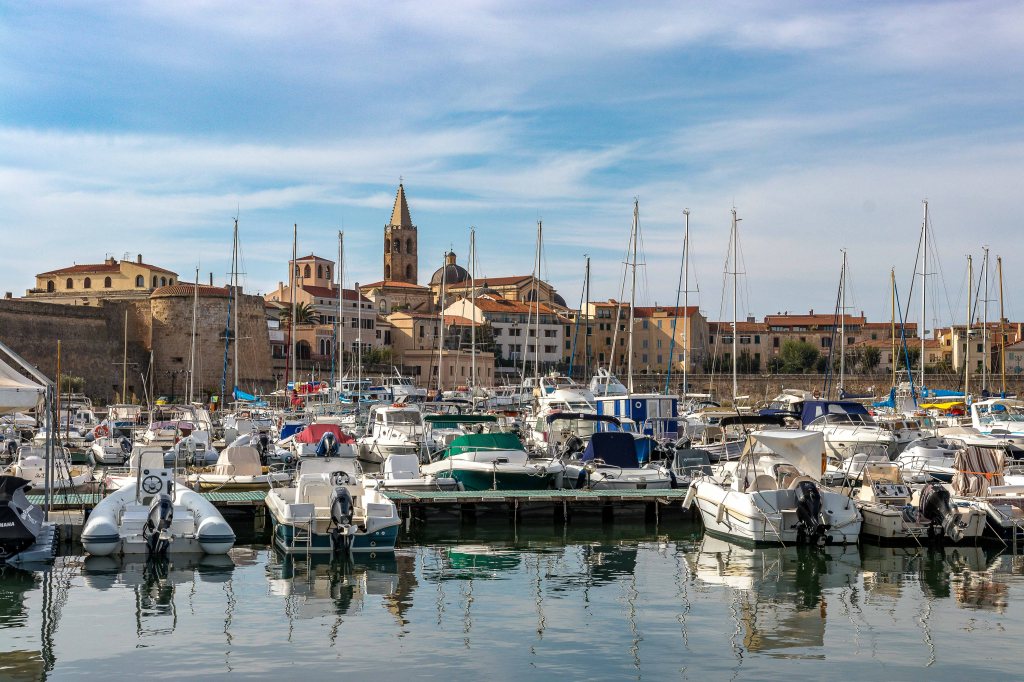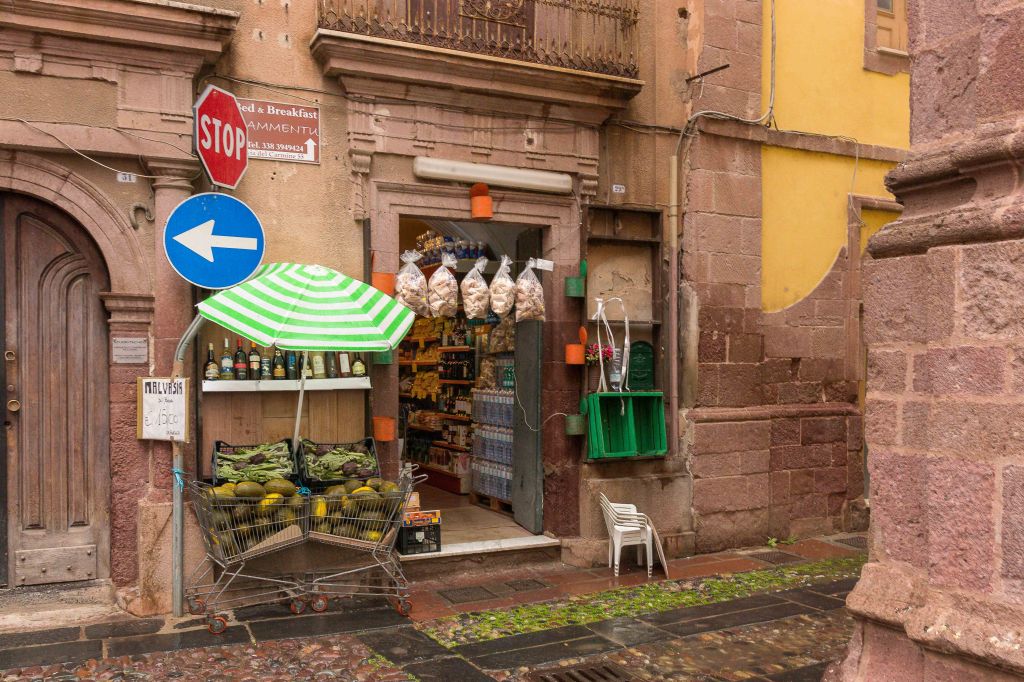 Am nächsten Tag durchstreifen wir ALGHERO, laut Reiseführer die schönste Stadt Sardiniens. Die Spanier regierten hier 400 Jahre. So sprechen die Einwohner auch heute noch einen katalanischen Dialekt, auf den Speisekarten wird Paella angeboten. In den belebten Gassen ist ein Souvenir-Geschäft neben dem anderen, die meisten bieten leuchtend roten Schmuck aus Korallen an. Etwas abseits vom Touristenstrom verfallen die Häuser, nur ein paar ältere Frauen pflegen liebevoll ihr kargen Pflanzen rund um die Haustür. Mache Blumen stecken in fantasievoll bemalten Plastikflaschen. Natürlich müssen wir, wie bisher bei jeden Besuch der Stadt, in der Markthalle einkaufen. Hier gibt es die kleinen grün-roten sardischen Tomaten mit viel Geschmack. In der Metzgerei sehen wir ein dunkelrotes Stück Fleisch, das wunderbar für Rouladen geeignet ist. Der Metzger schneidet uns mit dem Messer dünne Scheiben ab. „Genug, das langt.“ Doch er ist anderen Meinung, schneidet noch ein großes Stück ab und bedeutet dem Peter gestenreich, für den das gute Stück wohl sein soll, auf beiden Seiten nur kurz anbraten. Dann legt er kurzerhand noch vier Koteletts dazu, ohne sie zu wiegen, und fragt: „10 Euro?“. Wir nicken etwas überrascht und haben dann Probleme den Fleischberg im Kühlschrank unterzubringen.