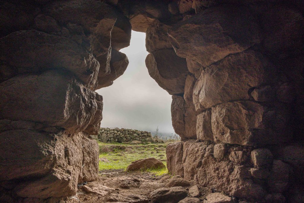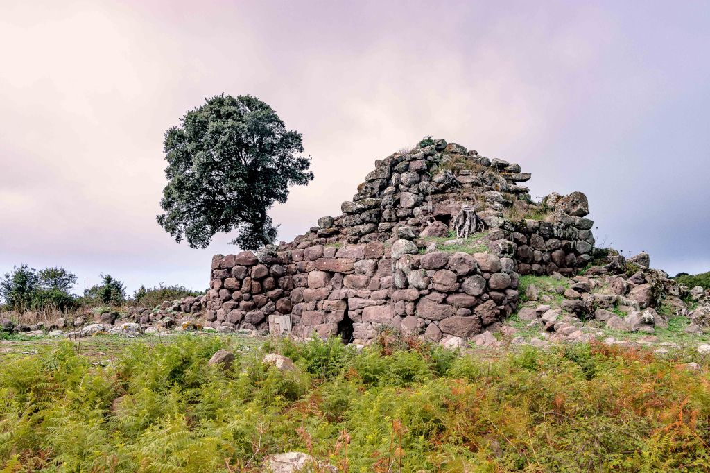 In der weiten Landschaft, durchschnitten von Trockenmauern, liegt auf einer Anhöhe die NURAGHE APPIU, umgeben von Korkeichen und Olivenbäumen. Selbst als Steinhaufen strahlt sie noch eine gewisse Macht und Würde aus.