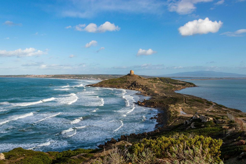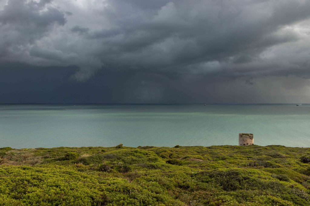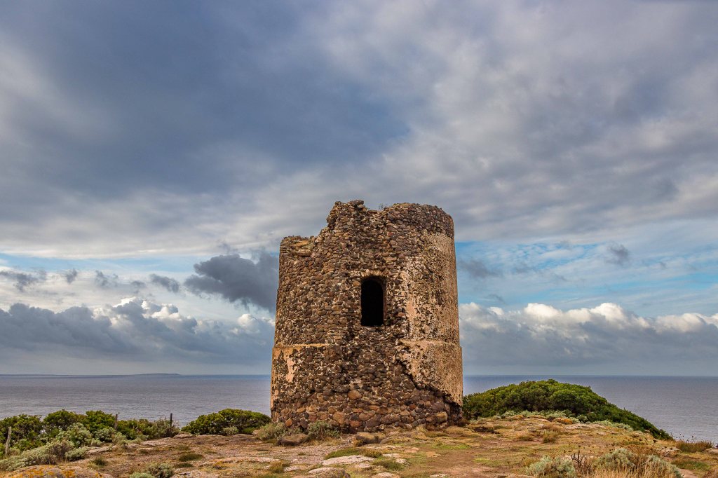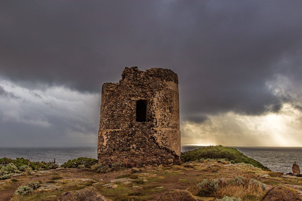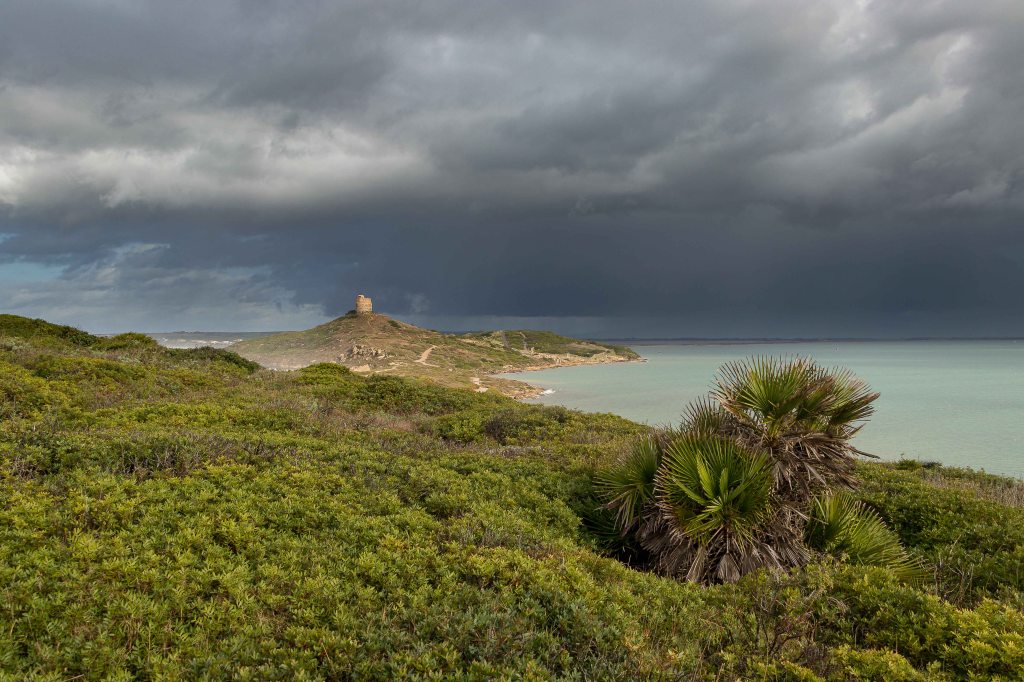 Das Wetter dreht sich, es wird herbstlicher: dicke graue Wolken ziehen über den Himmel, nur manchmal reißt der Wind eine Lücke für die Sonne und immer öfter regnet es. Wir verlassen das bunte BOSA und fahren ein paar Kilometer durch einsame Felder mit ein paar verstreuten Schafherden darauf zu einem unserer Lieblingsplätze in Sardinien: dem TORRE FOGHE, hoch über dem Meer.