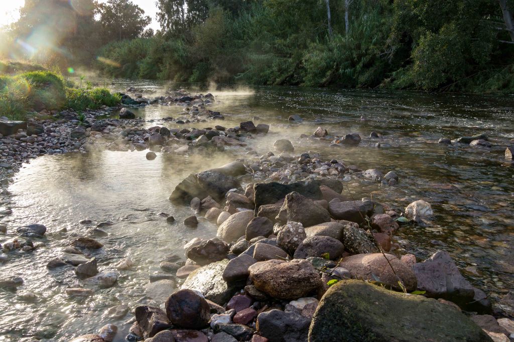 Die Nacht verbringen wir an der römischen Therme FORDONGIANUS am TIRSO. Hier strömt 540 C heißes Wasser in den Fluss. Leider hat dieser viel zu viel Wasser, als das die warmen Quellen in ein wenig erwärmen könnten.