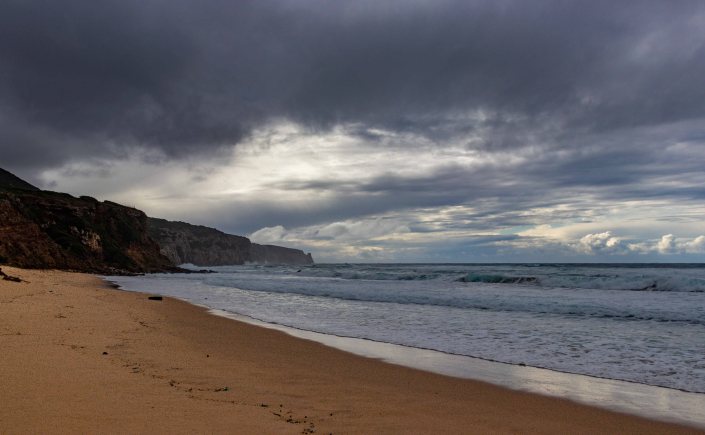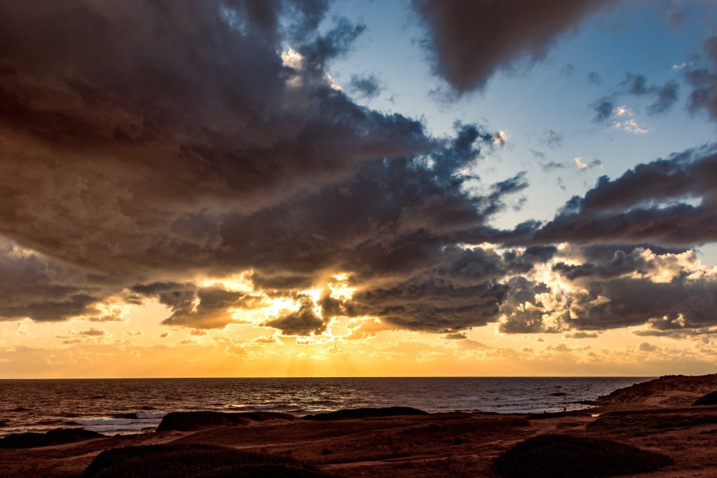 Wir schimpfen selten über das Wetter. In den Jahreszeiten, in denen wir unterwegs sind, müssen wir einfach damit rechnen, dass es regnet, stürmt und auch mal kalt wird. Dafür entliehen wir dem heimischen Winter, den sommerlichen Touristenscharen im Süden und genießen die Ruhe und meist das abwechslungsreiche Wetter mit seinen tollen Stimmungen. Doch wenn es, wie jetzt, drei Wochen am Stück meist nur grau ist, der Himmel tagelang seine Schleusen öffnet und wir nicht vor die Türe können, Bettwäsche und Kleider klamm sind, dürfen wir uns schon einmal über das Wetter beschweren. Auch heute zeigt der Blick über den weiten Strand von PORTIXEDDU ein fast einheitliches Grau, nur ein paar dunkelgraue Wolken heben sich vom hellen Streifen am Horizont ab.