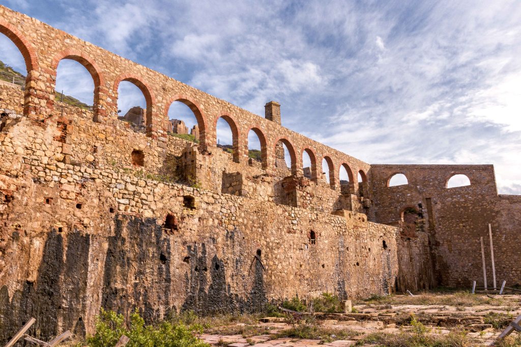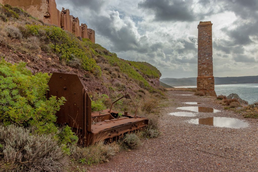 Über Jahrhunderte hinweg wurden in Sardinien Erze und Kohle gefördert. Ein letzte Blüte erlebten die Bergwerke unter den Faschisten, die für ihr Autonomiebestreben viel in den Bergbau investierten. Doch zusehends wurden die Gruben unrentabel, zudem war die sardische Kohle von schlechter Qualität. So sind heute alle Betriebe geschlossen. Geblieben sind unansehnliche Industrieruinen und gewaltige Abraumhalden. Viele dieser Bergwerke können besucht werden, doch jetzt, außerhalb der Saison, bleibt meist nur der Blick durch den Zaun. In IGLESIAS wurde in großen Stil Zink und Blei abgebaut. Das Verwaltungsgebäude zeugt noch von der einstmaligen Bedeutung, die Hänge sind überzogen mit dem roten Abraum. Ein paar Kilometer weiter, in NEBIDA, wurde das Erz gewaschen und verschifft. Die einstigen Waschanlagen ähneln mit ihren Rundbögen Kathedralen. Ach ja, und das Wetter: es soll die nächsten Tage nicht mehr regnen.