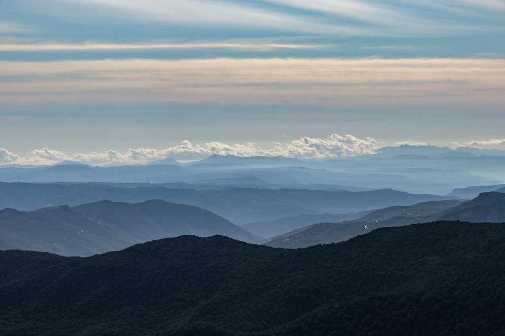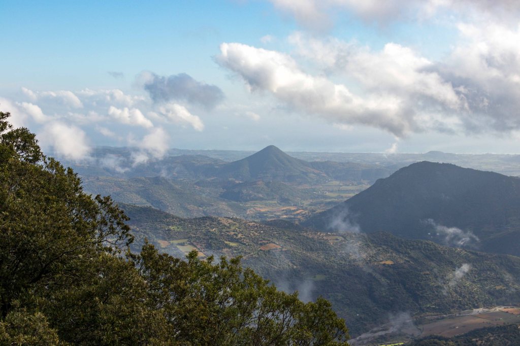 Das nächste Ziel ist die PIZZU MARGIANI POBUSA, mit 1323 m ü.d.M. die höchste Erhebung des MONTE TONNERI. Über eine schmale, aber meist gute Straße, erreichen wir den Ausgangspunkt. Die Wanderung beginnt auf einer breiten Piste, hinein in die Wälder der ENTE FORESTE DELLA SARDEGANA. Hier wird ein großes Gebiet wieder aufgeforstet. Dann wird der Weg schöner, von vielen Geländern geleitet führt er durch einen abwechslungsreichen Mischwald. Etwas abseits vom Weg liegt das 48 m tiefe Karstloch SU STAMPU. Hier kann problemlos ein Mensch für immer verschwinden. Über eine alte Straße erreiche ich den Gipfel mit dem Haus für den Feuerwächter, der jetzt zu dieser Jahreszeit natürlich nicht hier ist. Rundherum reicht der Blick über die unzähligen Hügelketten Sardiniens.