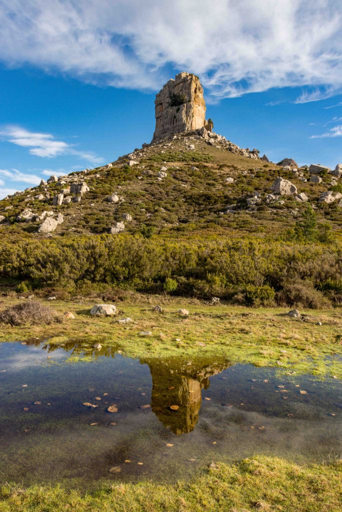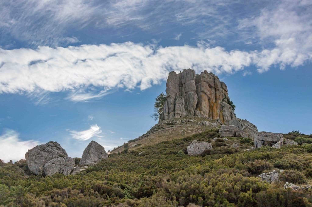Das sonnige und warme Wetter nutzend, fahren wir weiter hinein in die Berge der OGLIASTRA. Der MONTE TONNERI ist dabei einer der eigentümlichsten Gegenden dieses Gebirges: „Tonneri“ heißen die kleinen Tafelberge, „Tacci“ die steil aufragenden Felstürme der Region. Einer der imposantesten Felstürme ist der PERDA ‚E LIANA, der Stein der Ebene. Auf gut ausgebauten Weg können wir in umrunden.