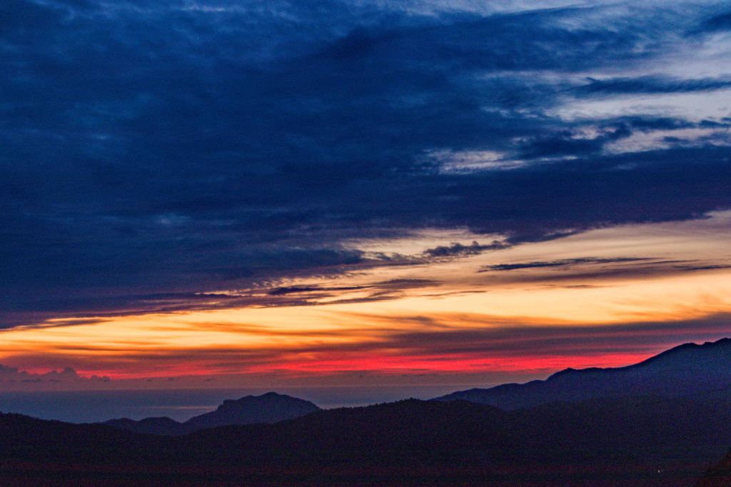 Das Warten auf sonnigere Tage hat sich gelohnt, ein farbiger Sonnenaufgang lässt auf gutes Wanderwetter hoffen.
