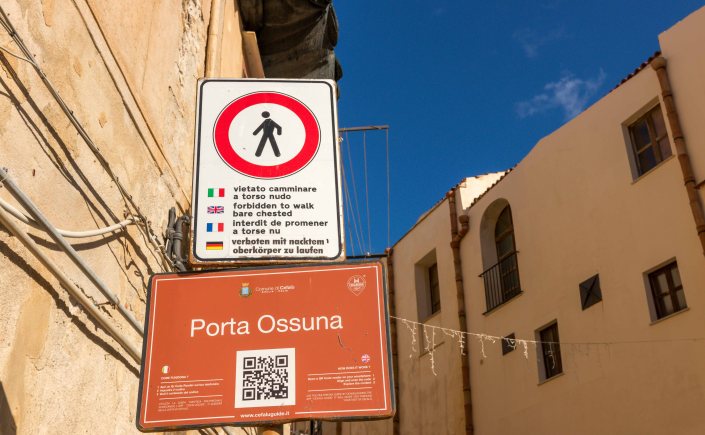 Da die Zufahrt zum Ort für Wohnmobile gesperrt ist, parken wir am Hafen. Von hier führt ein betonierter Weg über die Klippen in das historische Zentrum. Wichtig erscheint der Hinweis, nicht mit nacktem Oberkörper zu flanieren. Als einer der wenigen Rest der arabischen Zeit versteckt sich in den engen Gassen ein Waschhaus, gespeist durch einen unterirdischen Bach.