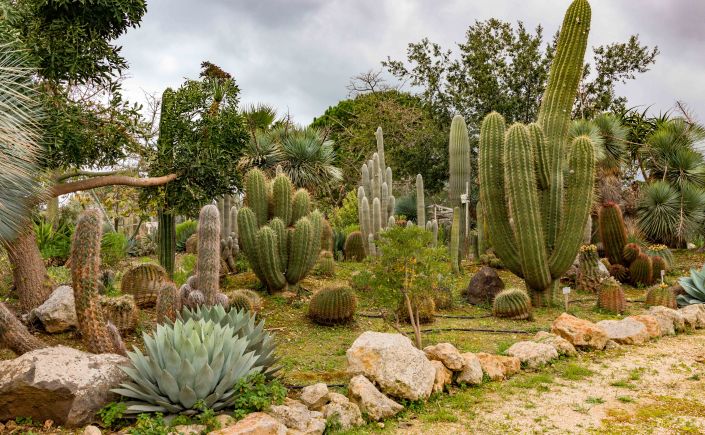 Irgendwo in der Ebene zwischen SYRAKUS und AVOLA entdecken wir einen Garten mit vielen unterschiedlichen Kakteen. Das Tor ist offen, keine Menschenseele ist zu sehen. Ein breiter Weg führt zu einem großen Parkplatz, so trauen wir uns vorsichtig hinein. Stauend betrachten wir die Vielfalt der stacheligen Schönheiten.