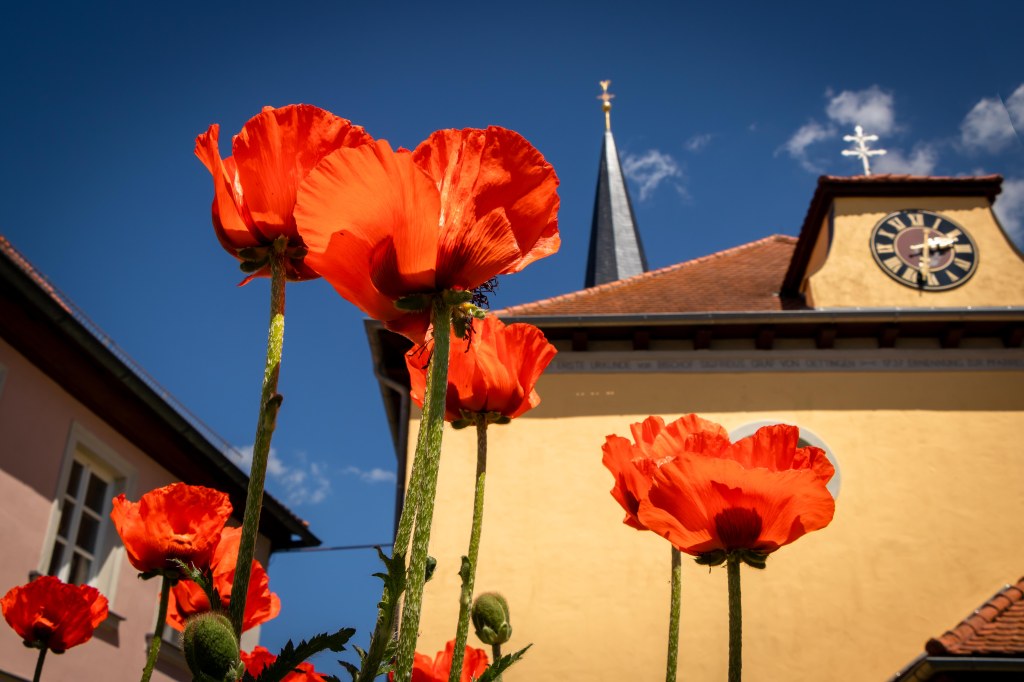 Eigentliche wollten wir nach den Pfingstfeiertagen ins Allgäu fahren und dort auch Freunde treffen. Doch irgendwie schwant uns, dass noch mehr auf die Idee gekommen sein könnten und unsere Lieblingsplätze heillos überfüllt sind. So ließen wir den ursprünglichen Plan fallen und fahren stattdessen in die Fränkische Schweiz in die Nähe von SCHESSLITZ. Etwas erhöht am Hang finden wir schnell einen Wanderparkplatz, auf dem über Tag neben uns höchstens drei Autos stehen, und kein weiteres Wohnmobil. Als wir in den Nachrichten lesen, dass das Allgäu vom Bodensee bis nach Füssen von Urlaubern und Ausflüglern völlig überrannt wurde, freuen wir uns gleich doppelt über die Einsam- und Beschaulichkeit in unserer fränkischen Heimat.
