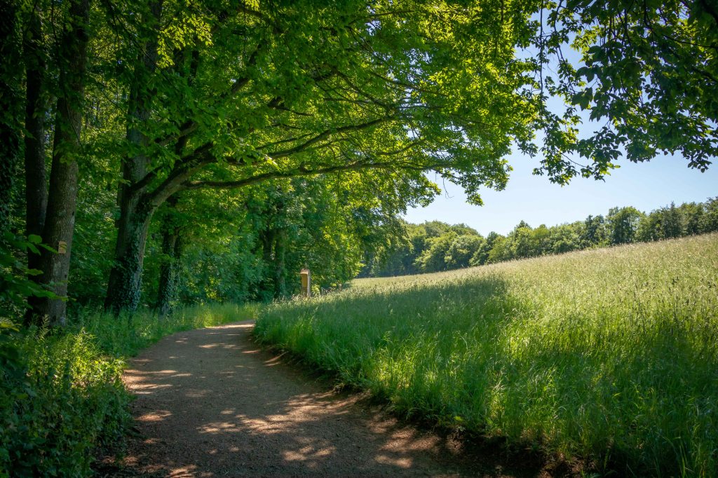 Weiter führt der beschauliche Weg durch einen lichten Buchenwald nach LUDWAG. In der alten Gemeinde, die erste urkundliche Erwähnung stammt aus de Jahre 1061, steht eine für die Region untypische moderne Kirche.