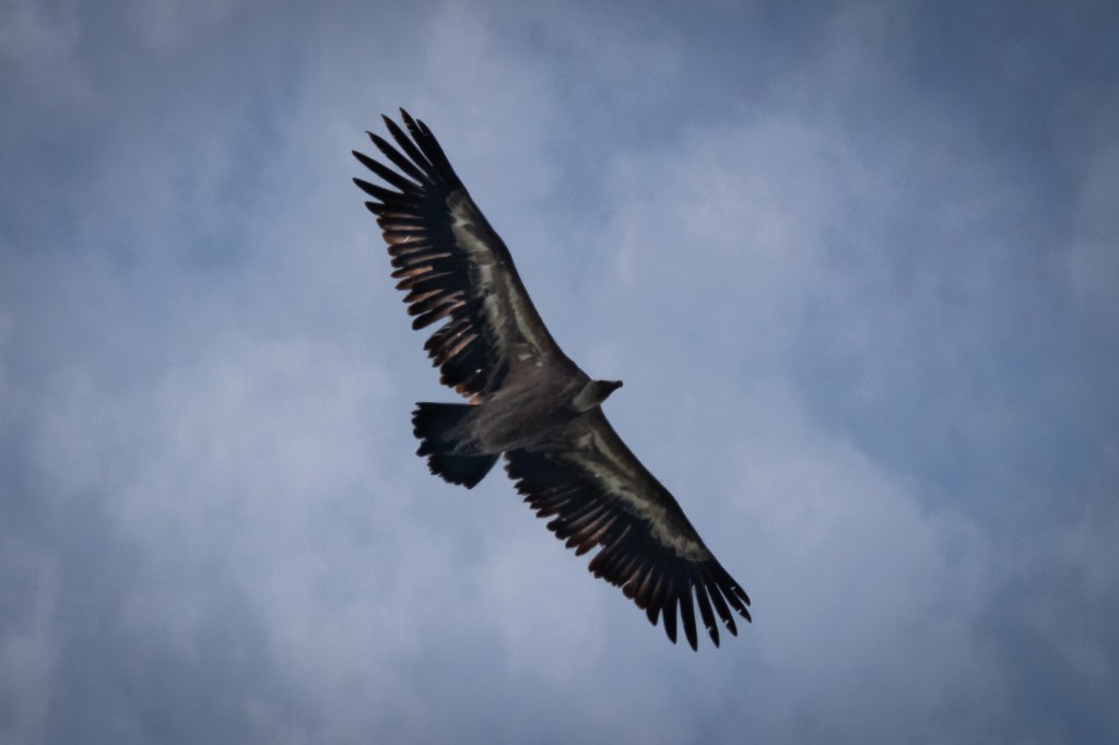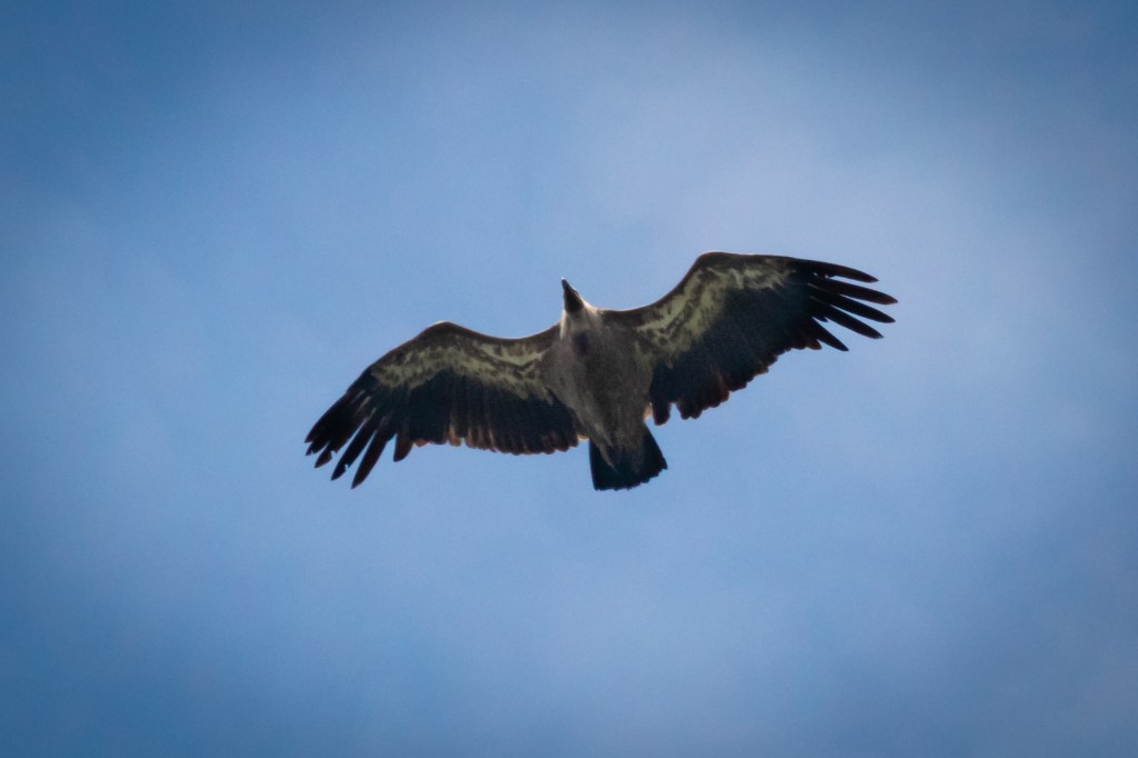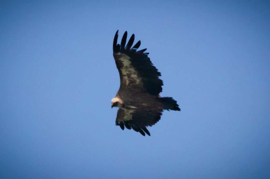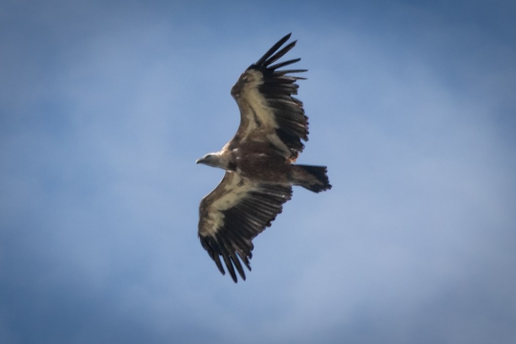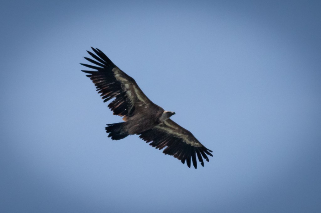 Das Besondere an dieser Gegend sind jedoch die Gänsegeier, die vor Jahren hier ausgewildert wurden. Aus den Felsen unter mir, steigen sie geschwind in der einsetzenden Thermik ohne einen Flügelschlag weit in Himmel, bis sie nur noch als kleine Punkte zu erkennen sind. Heute zähle ich gut ein Dutzend der majestätisch fliegenden Vögel.