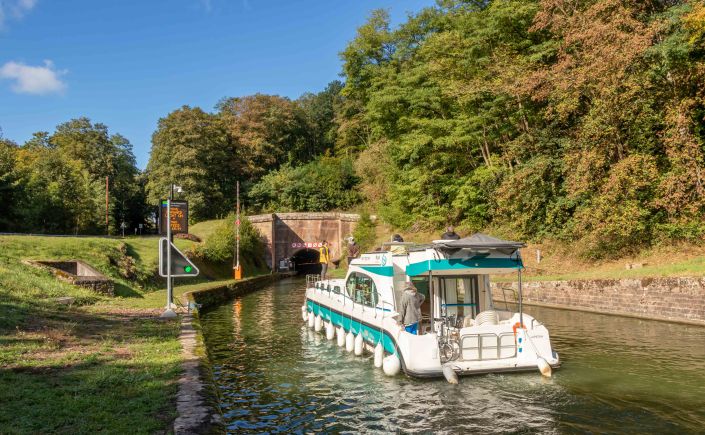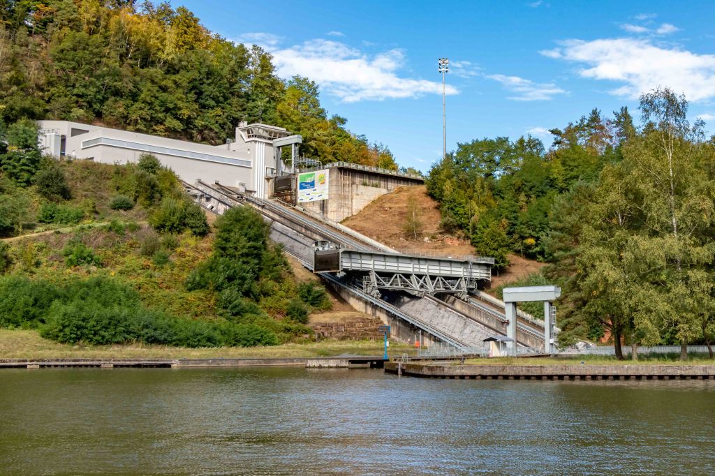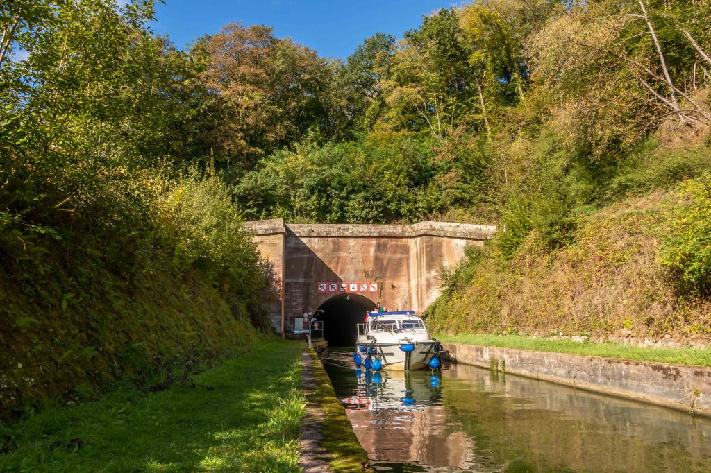 Wir besuchen heute den Canal de la Marne au Rhin. Unser Wanderführer „Vergessene Pfade“ vom Bruckmann-Verlag, sehr empfehlenswert, führt uns dorthin. Zwei Besonderheiten erwarten uns: Erst in den 60er Jahren des letzten Jahrhundert wurde ein Schräg-Schiffshebewerk erbaut. Dieses überwindet 45 Höhenmeter und ersetzt einen Kanalabschnitt mit 17 Schleusen, für welchen die Schiffer einen ganzen Tag benötigten. Die zweite Sehenswürdigkeit ist ein Tunnel (es gibt weitere drei) mit einer Länge von 2 500 m, durch das die Boote mit 4 km/h die Stunde fahren dürfen.
