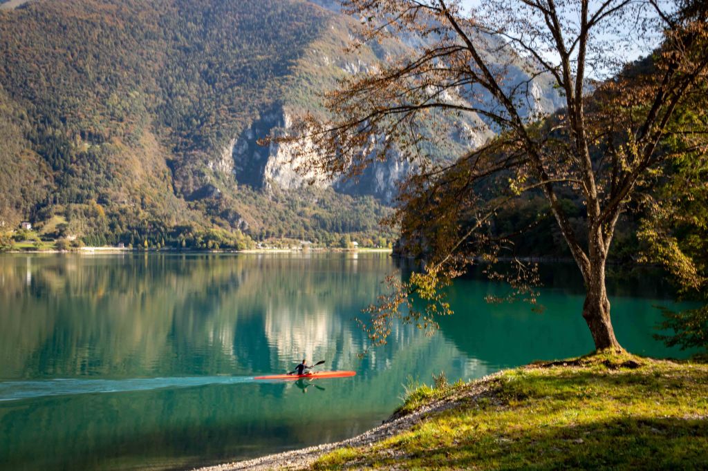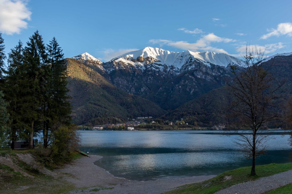 Nach 24 Stunden Regen ohne Unterlass, der uns jedoch einen ruhigen Tag beschert, verlassen wir den Ledrosee, der mittlerweile von weiß leuchtenden Bergen umgeben ist.