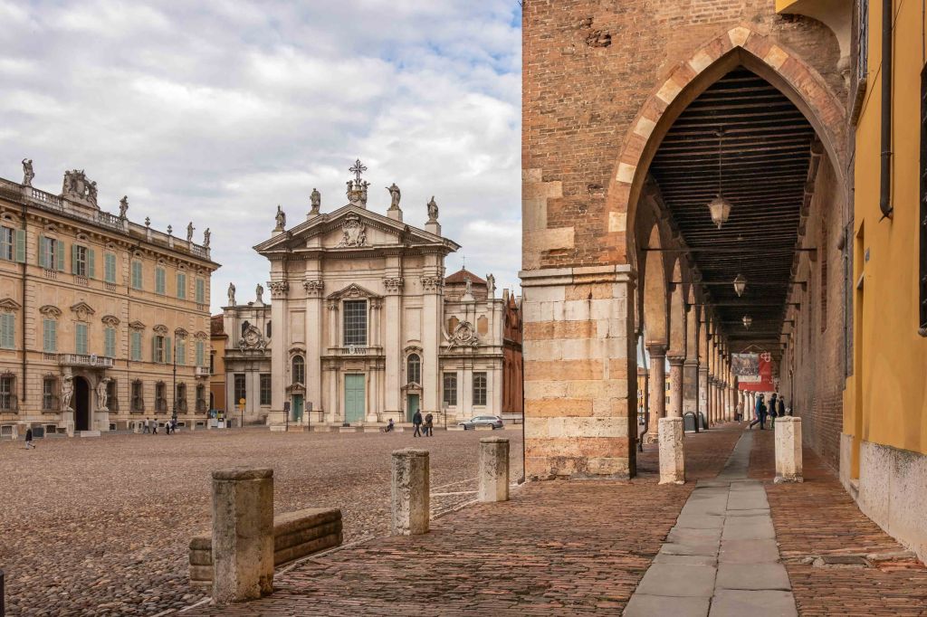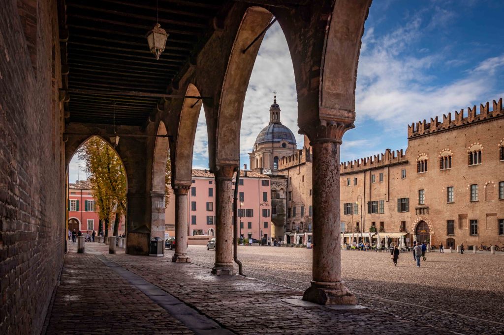 Am frühen Vormittag erreichen wir Mantua, wo wir schnell einen ruhigen Parkplatz mit Blick auf die Altstadt finden. Die Stadt ist eine Gründung der Etrusker. Im 12. Jahrhundert wurde der Fiume Minico zur besseren Verteidigung aufgestaut. Seitdem ist die Stadt von vier Seen umgeben und wirkt wie eine Insel. Wie so viele andere Orte, hat auch dieser eine wechselvolle Geschichte, ständig waren andere Herrscher am regieren. Mal waren es die römisch-deutschen Kaiser, dann stritten Frankreich und die Habsburger um die Vormacht. Napoleon nahm sie zweimal ein und ließ hier den Tiroler Andreas Hofer hinrichten. Dann herrschten die Österreicher und als Folge des Deutschen Kriegs kam die Stadt erst 1866 zu Italien. Seit 2008 ist Mantua UNESCO-Weltkulturerbe.