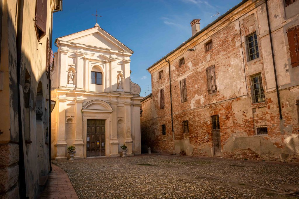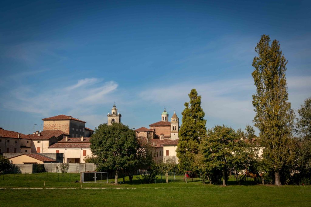 Nach einer ungestörten Nacht fahren wir weiter durch die Po-Ebene. Wir durchqueren kleine Dörfer und kommen an zahlreichen großen Bauernhöfen vorbei, viele davon bereits verlassen. Nach gemütlicher Fahrt erreichen wir Sabbioneta, an dessen Ziegelsteinmauer wir gleich einen schönen Platz finden. Zwischen 1554 und 1571 ließ Vespasiano Gonzaga die vom Vater ererbte Stadt als Idealstadt im Stiel der Renaissance erbauen. Nach römisch-kaiserzeitlichen Vorbild hat der Bauherr die Hauptachse der Stadt auf den Punkt des Sonnenaufgangs zu seinem Geburtstag, dem 6. Dezember nach Julianischen Kalender, ausrichten lassen. Seit 2008 ist Sabbioneta, zusammen mit Mantua, UNESCO-Weltkulturerbe. Auf uns wirkt die Stadt trist und etwas zu ideal. Die Gassen sind wie ausgestorben, nur am Marktplatz sitzen ein paar Bewohner im Café.