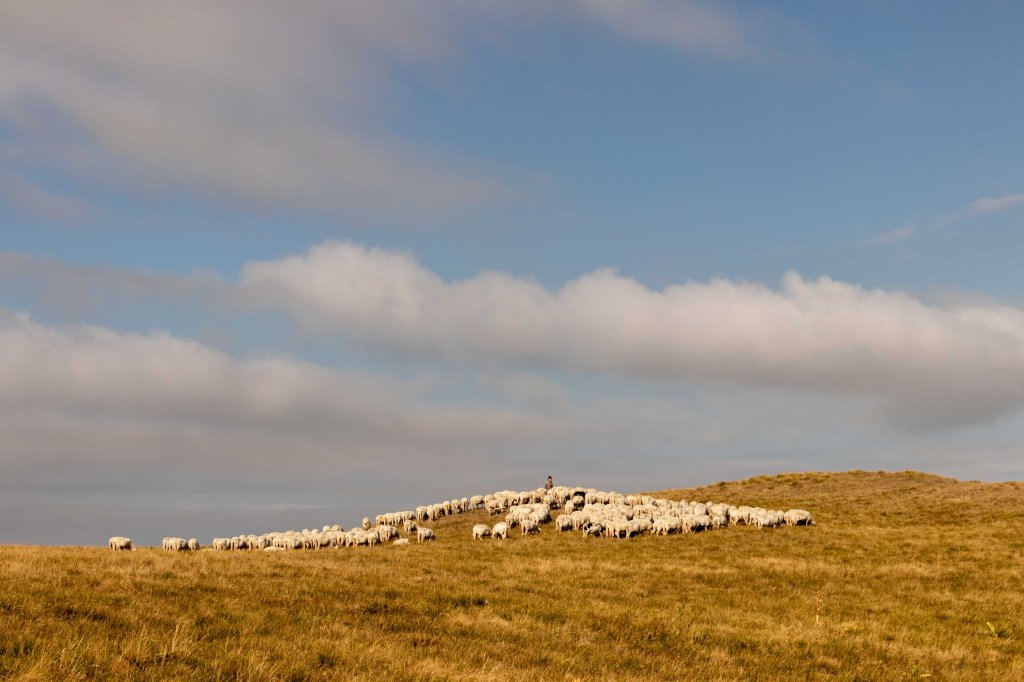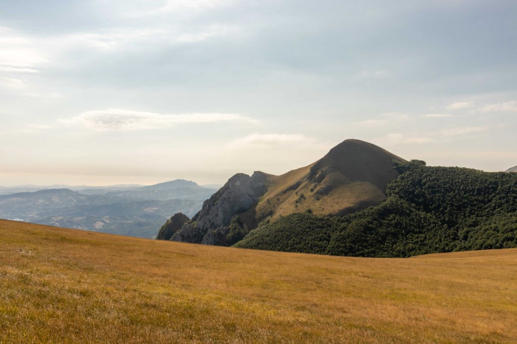 Wir übernachten nahe dem MONTE MONTIOLI auf 1300 m, mit einem ersten Blick auf die in der Morgensonne glitzernden ADRIA. Hier ist es trotz der Sonne erfrischend frisch, wir frieren fast bei 20 0C. Eine kleine Wanderung über die sommertrockenen Wiesen führt zum PIZZO DI META. Schafherden, sorgsam bewacht von den Hütehunden, ziehen gemütlich über die Hochfläche, die Schäfer winken freundlich dem einsamen Wanderer zu.