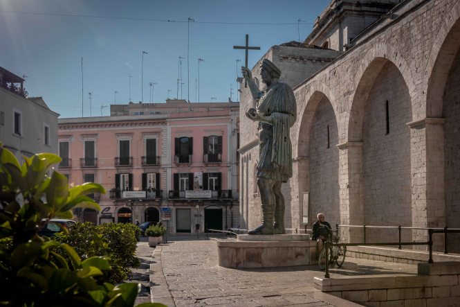 Barletta ist ein ganz nettes Städtchen, dominiert vom Kastell, in dem sich die Kreuzritter vor ihrem Weg ins Heilige Land sammelten und der Kathedrale Santa Maria Maggiore. Etwas verloren steht der Koloss von Barletta da, eine Bronzestatue, die einen römischen Kaiser aus dem 5. Jahrhundert darstellen soll.