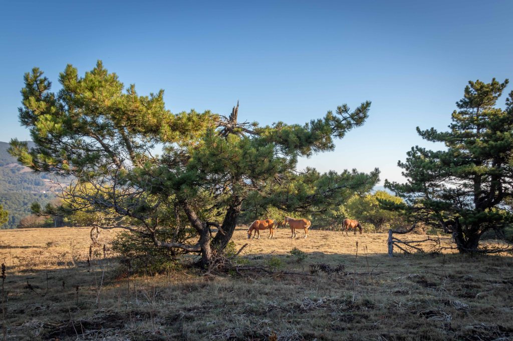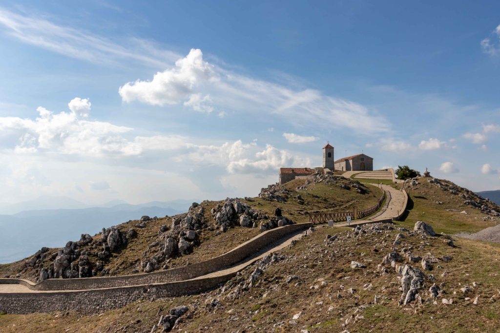 Der Apennin zieht sich von Ligurien über die Stiefelspitze in Kalabrien bis hin nach Sizilien. Hier in der Basilikata sind die höchsten, meist runden, Berggipfel dieses gewaltigen Gebirges etwas über 1800 m hoch. Wir finden einsame und malerische Plätze, von denen auch die Wanderungen starten. Meist führen die Pfade erst durch schattige Wälder, bevor sie aussichtsreich über Wiesengrate an einer runden Kuppe enden. Im Dunst des mächtigen Inversion schimmert das Meer und eine Bergkette reiht sich an die andere. Überall streunen Kühe und Pferde herum. Hoch auf der Kuppe des Monte di Viggiano verbringt die Königin Lukaniens, die „Regina della Lucania“ ihre Sommerfrische. Am ersten Maiwochenende wird sie in einer dreistündigen Prozession hinaufgetragen, am ersten Septemberwochenende kehrt sie ins Tal zurück. Am 1835 m hohen Monte Volturino endet ein Schlepplift, kaum zu glauben, dass es so weit im Süden Italiens ein Skigebiet gibt.