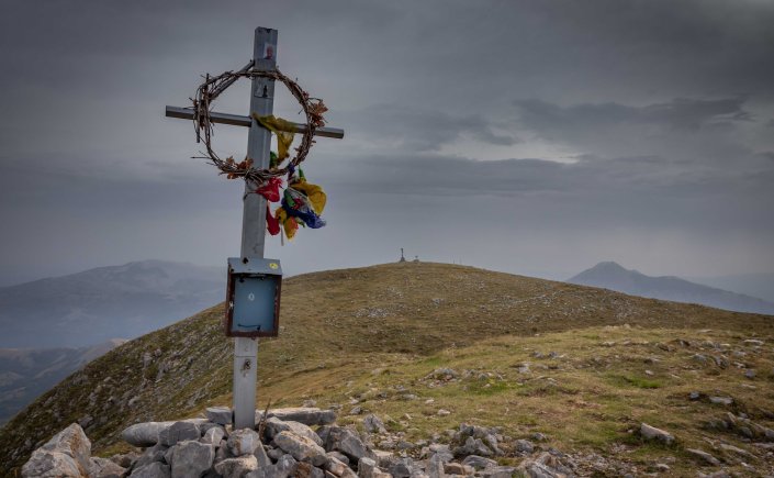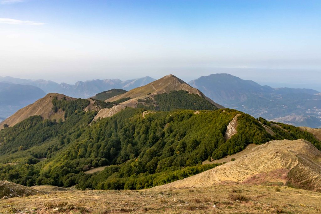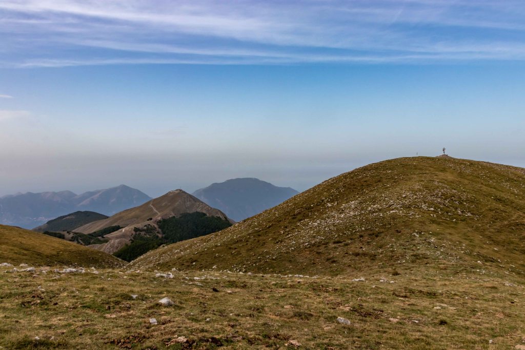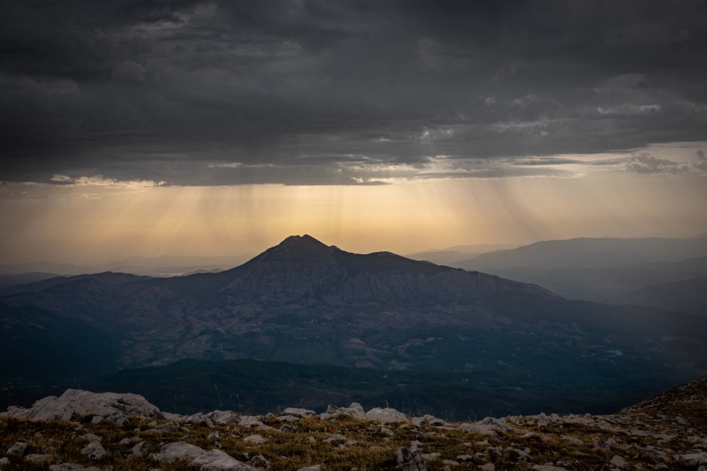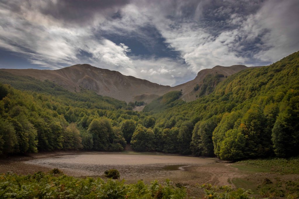 Am Lago Laudemio, laut Reiseführer der höchst gelegene Gletschersee (eher ein Tümpel) Europas auf 1538 m, finden wir einen ruhigen Parkplatz. Das Sirino-Massiv dominiert die Landschaft, ist doch der MONTE DEL PAPA der einzige Zweitausender weit und breit. Nach einem Ruhetag wandert Peter los, um drei Gipfel zu erklimmen: Timpa Scazzariddo1946 m, Monte del Papa 2005 m und den Monte Sirino 1907 m. Eine Menge Saharastaub taucht die Landschaft in ein diffuses Licht mit bizarren Wolken, gegen Westen hin leuchtet schon wieder der blaue Himmel. Am Nachmittag fragen Carabinieri nach unserem Wohlbefinden und „genehmigen“ uns freundlicherweise eine Übernachtung.