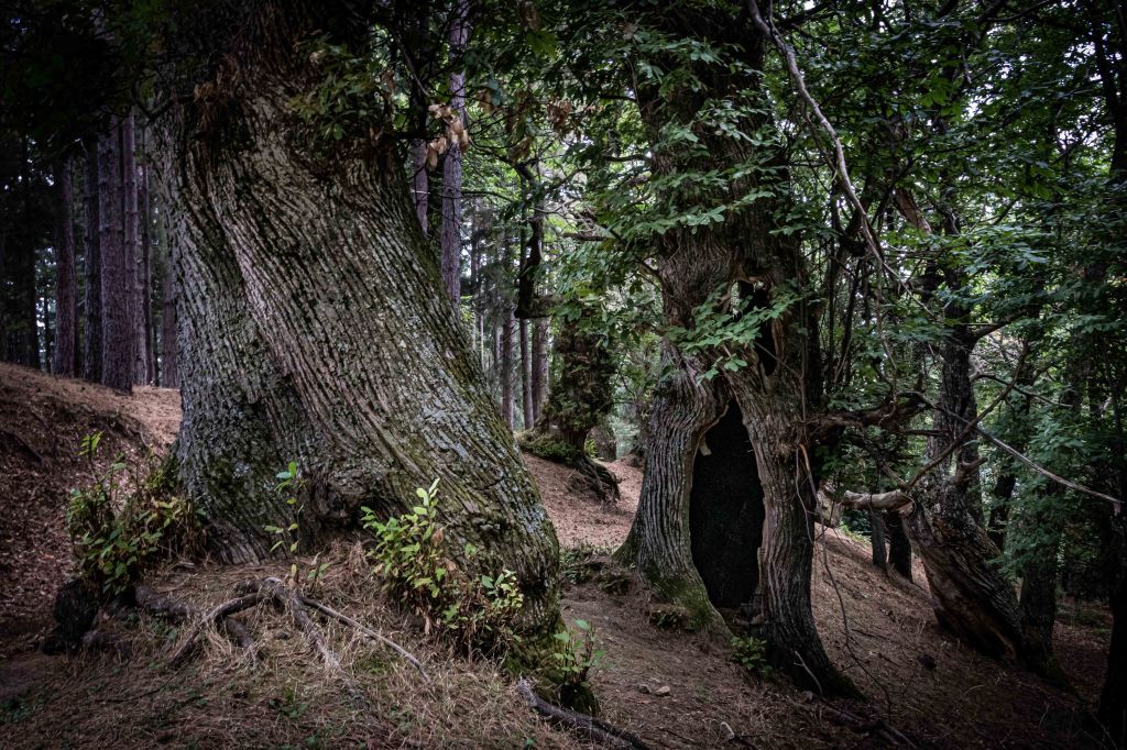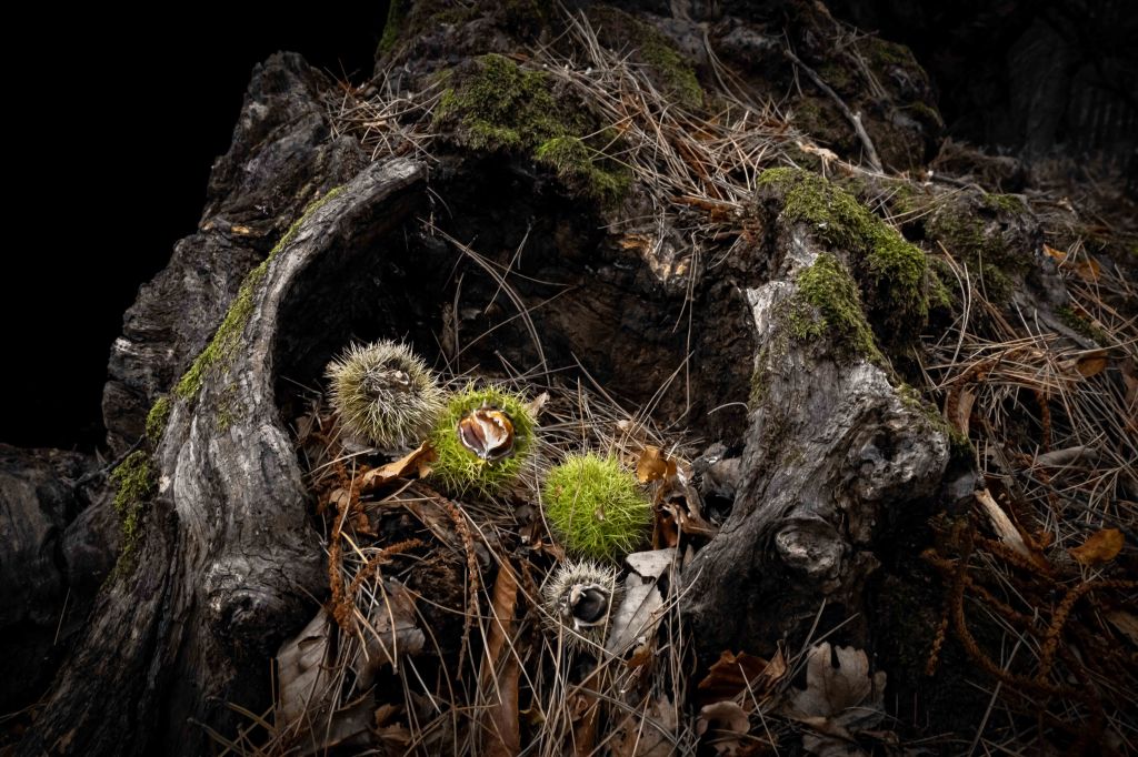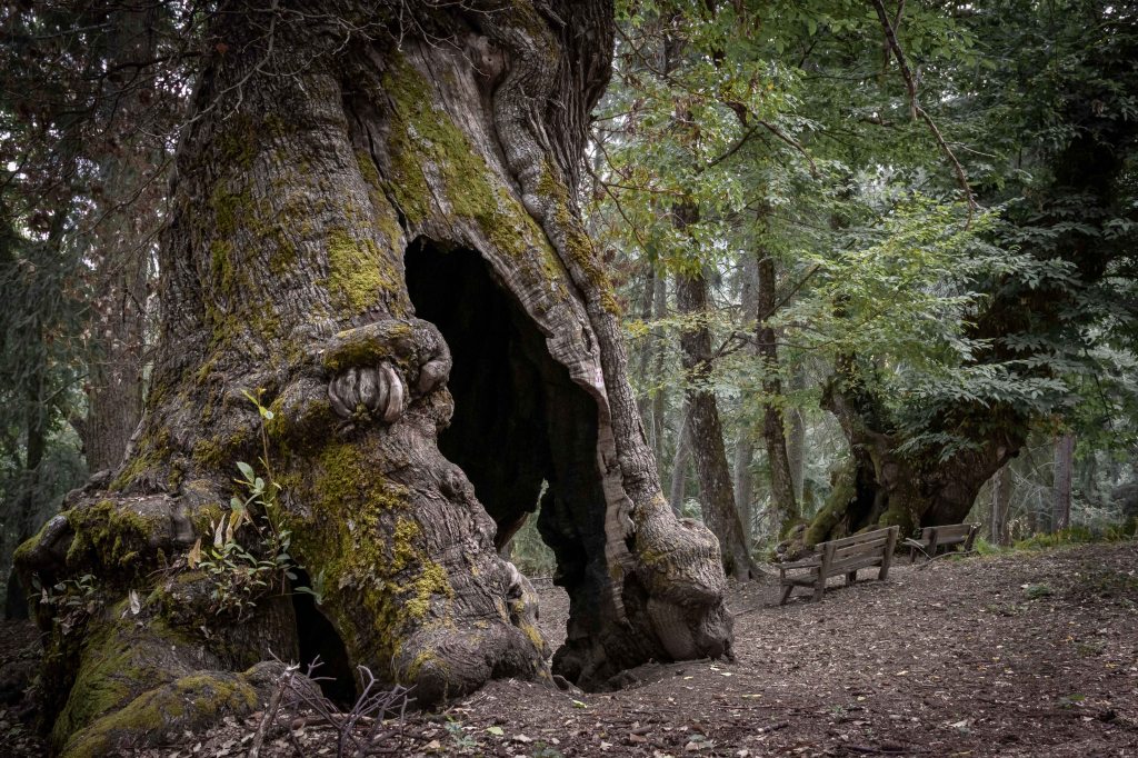 Nur ein paar Kilometer weiter gibt es das Naturdenkmal Oasi naturalistica dei Giganti di Cozzo del Pesco zu bestaunen: Inmitten des Kiefernwaldes stehen über 100 mächtige Edelkastanien, manche der Riesen sind bereits abgestorben, viele mit hohlem Stamm, andere vom Blitz gezeichnet und vom Sturm zerbrochen, doch überall schlägt das frische Grün aus den runzeligen Rinden.