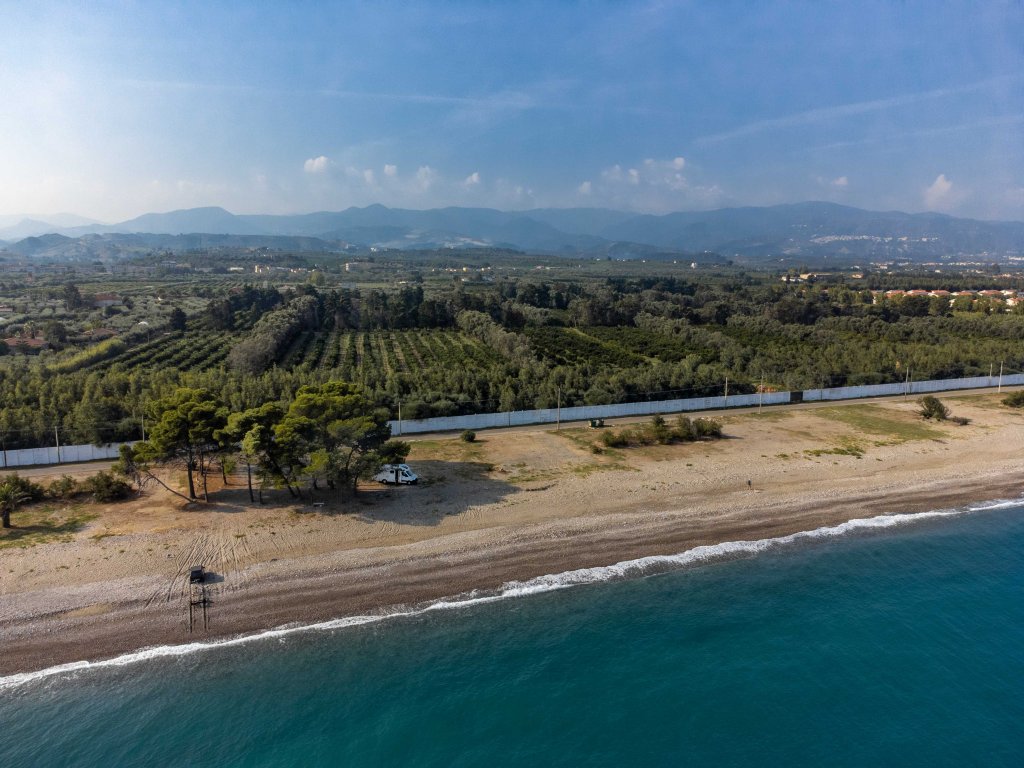Wir verlassen das Pollina-Massiv, queren das breite Tal, in dem das antike Sybaris sich ausbreitete, und erklimmen die ersten Hügel des Sila-Gebirges. Der Name leitet sich vom lateinischen „silva“ für Wald ab. So ist es kein Wunder, dass wir über die kurvenreiche, doch ausreichend breite, Straße durch dichten Wald fahren. Auf 600 Meter Höhe steht das kleine Kirchlein des ehemaligen Klosters Santa Maria del Patire. Da nicht viel los ist, können wir am kleinen Besucherparkplatz stehen bleiben. Von hier haben wir einen schönen Blick auf die schlichte aber harmonische Front der Klosterkirche aus dem 11. Jahrhundert. Im Innern überraschen gut erhaltene Bodenmosaike, die wie von Kinderhand gemacht aussehen.