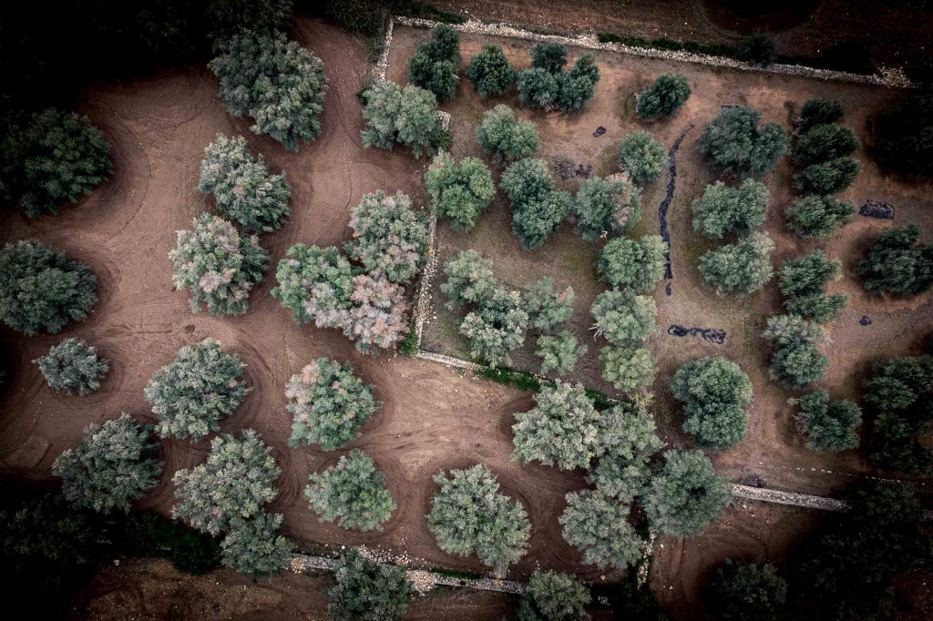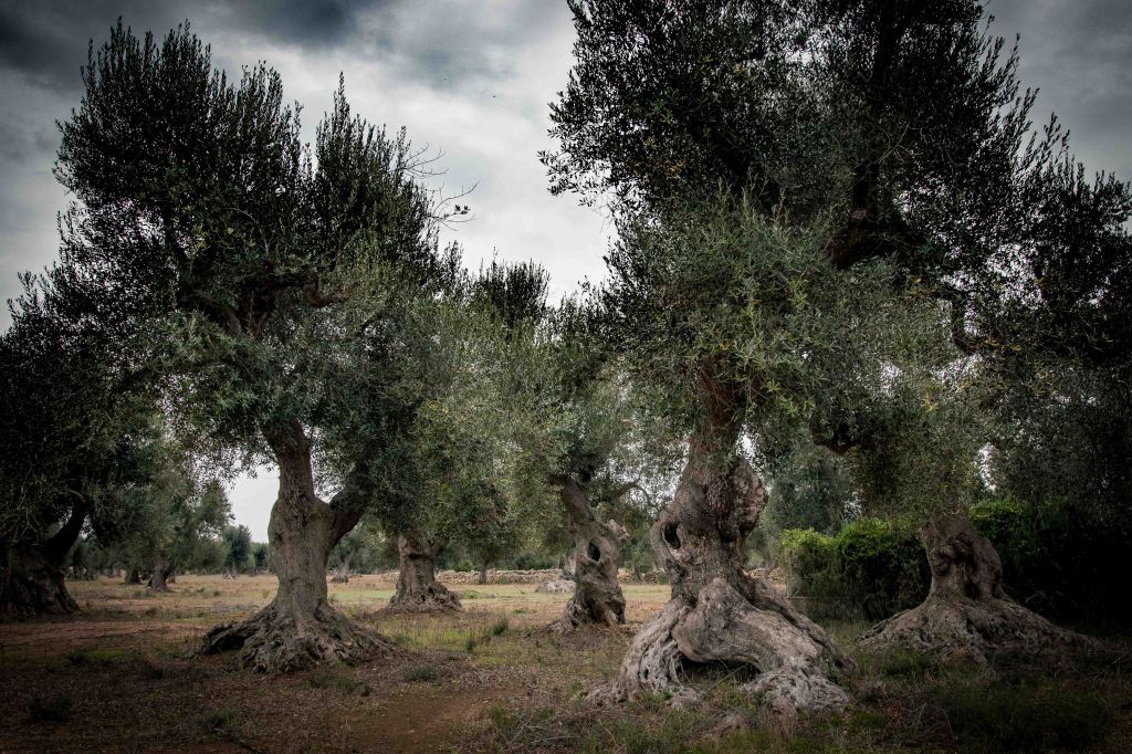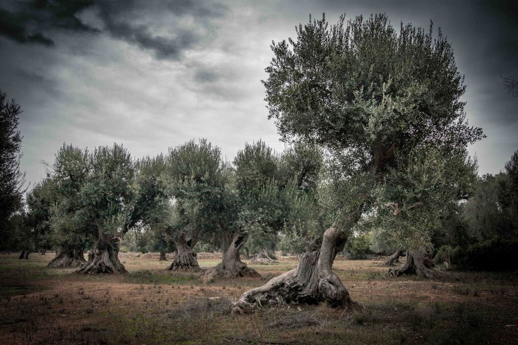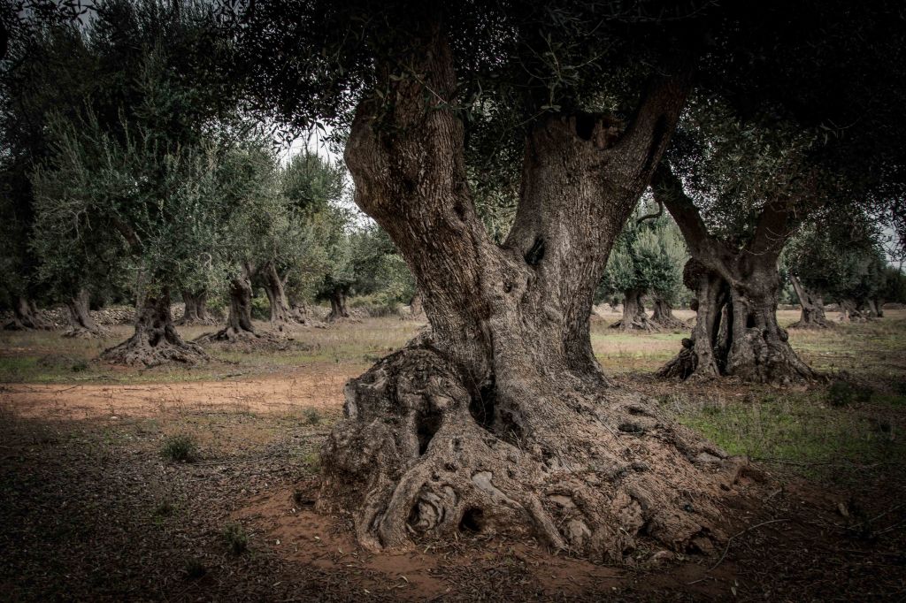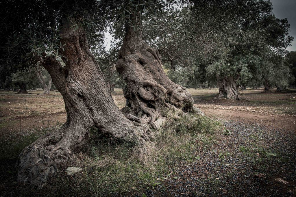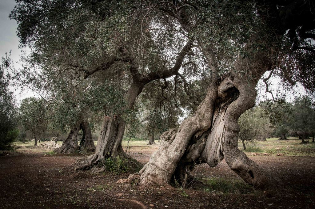 Mächtig sind die alten Oliven und die Ernte ist im vollen Gang. Ein Auto hält, ein Olivenbauer fragt auf Hessisch, wo wir herkommen und erklärt, dass in wenigen Jahren hier kein Olivenbaum mehr stehen wird. Das Bakterium Xylella fastidiose, übertragen von einer Zwergzikade, wütet seit 2013, erst im Süden Apuliens und verbreitet sich immer weiter in den Norden. Erst von der Luft aus sieht man die braunen Blätter, am Boden scheint alles noch gesund. Zum Glück sind die Früchte nicht befallen. Als wir weiter in den Süden kommen, wird das Bild immer trauriger, tote Oliven über weite Strecken.
