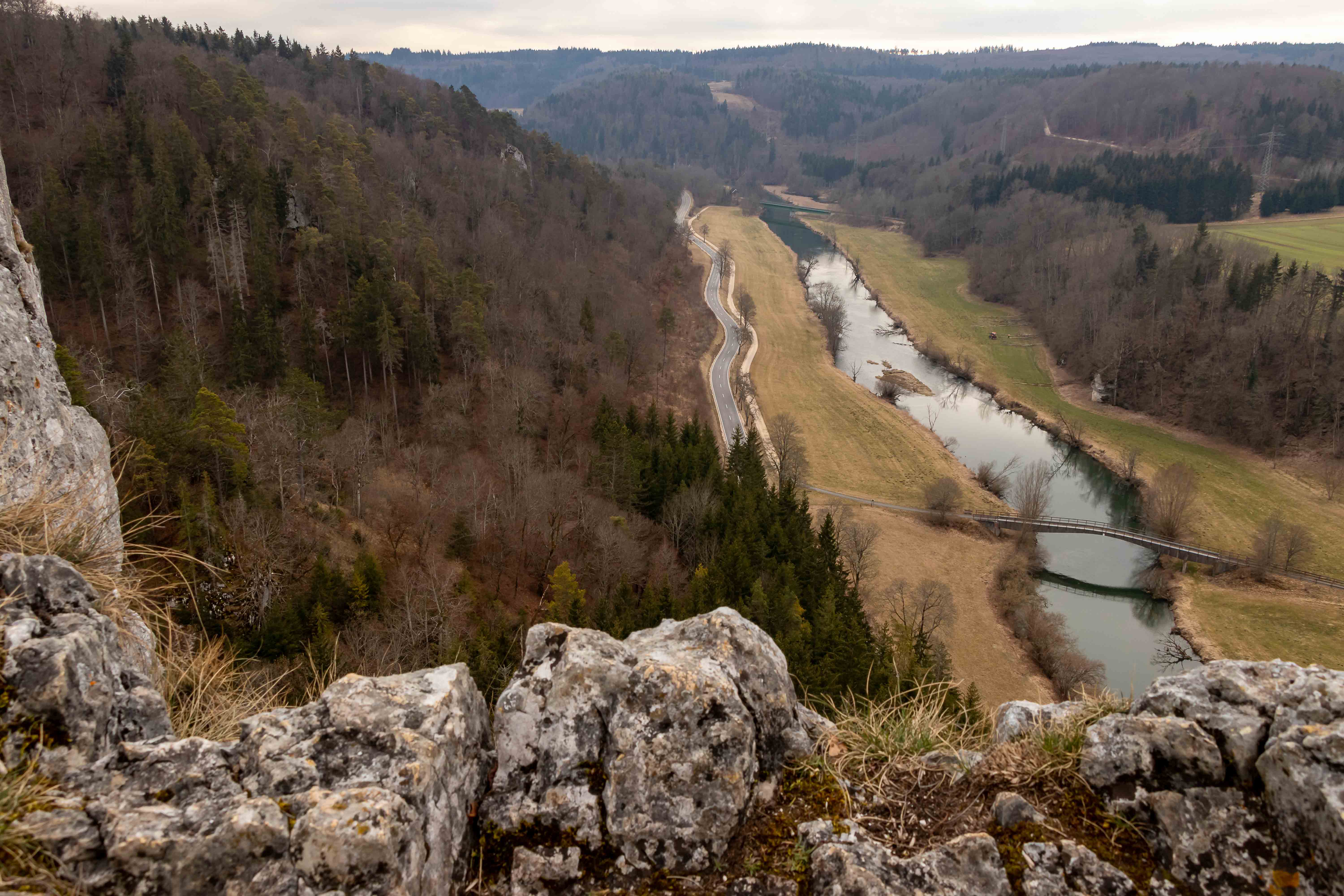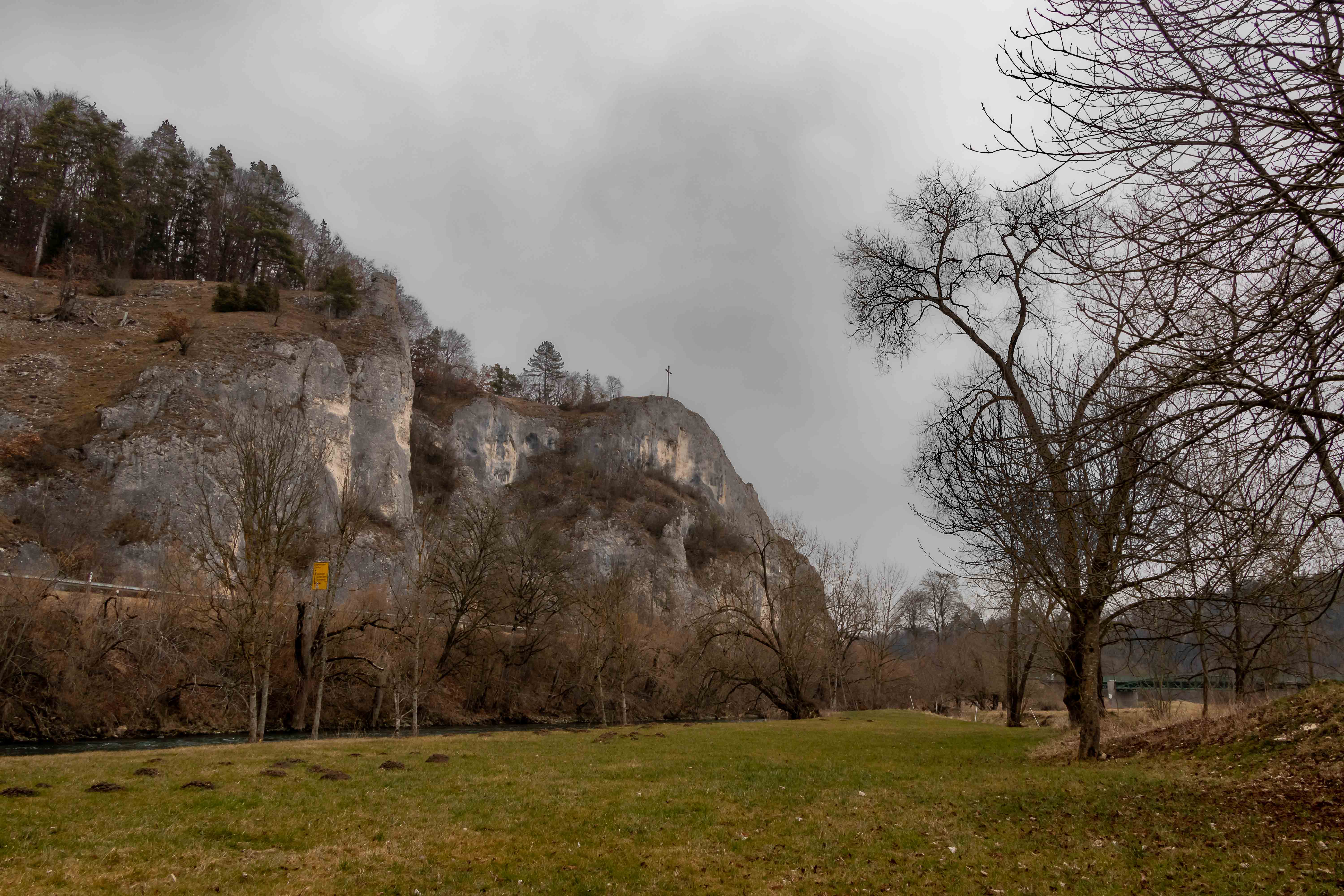 Die DONAU ist auf den nächsten Kilometern unser Begleiter. Bei GUTENSTEIN zwängt sie sich durch den Jura und bildete einen Felsengarten. Schon seit einiger Zeit blüht die Haselnuss und vorwitzig lugt die erste Küchenschelle durch das alte Laub.