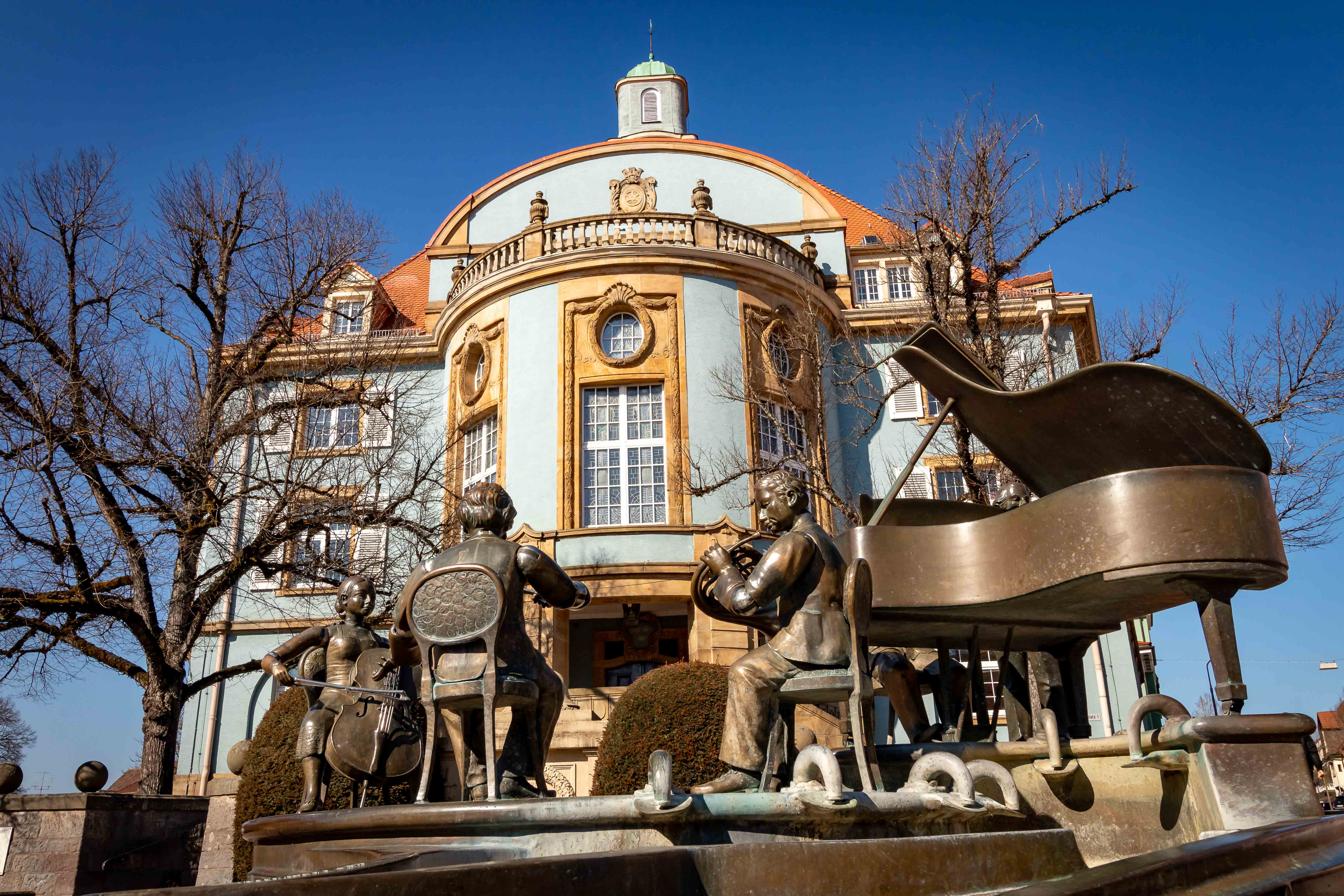 DONAUESCHINGEN beansprucht für sich die DONAUQUELLE. Kunstvoll gefasst sprudelt das Wasser unterhalb der Stadtkirche St. Johann aus einem Quelltopf. Durch den Donautempel, beauftragt von Kaiser Wilhelm II., fließt die Donau in die Brigach, die sich ein paar Meter weiter mit der Breg vereint und nun Donau heißt. Etwas verwirrend.