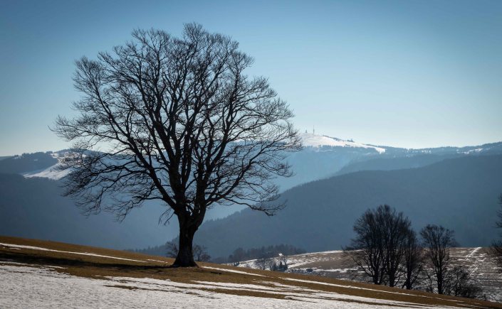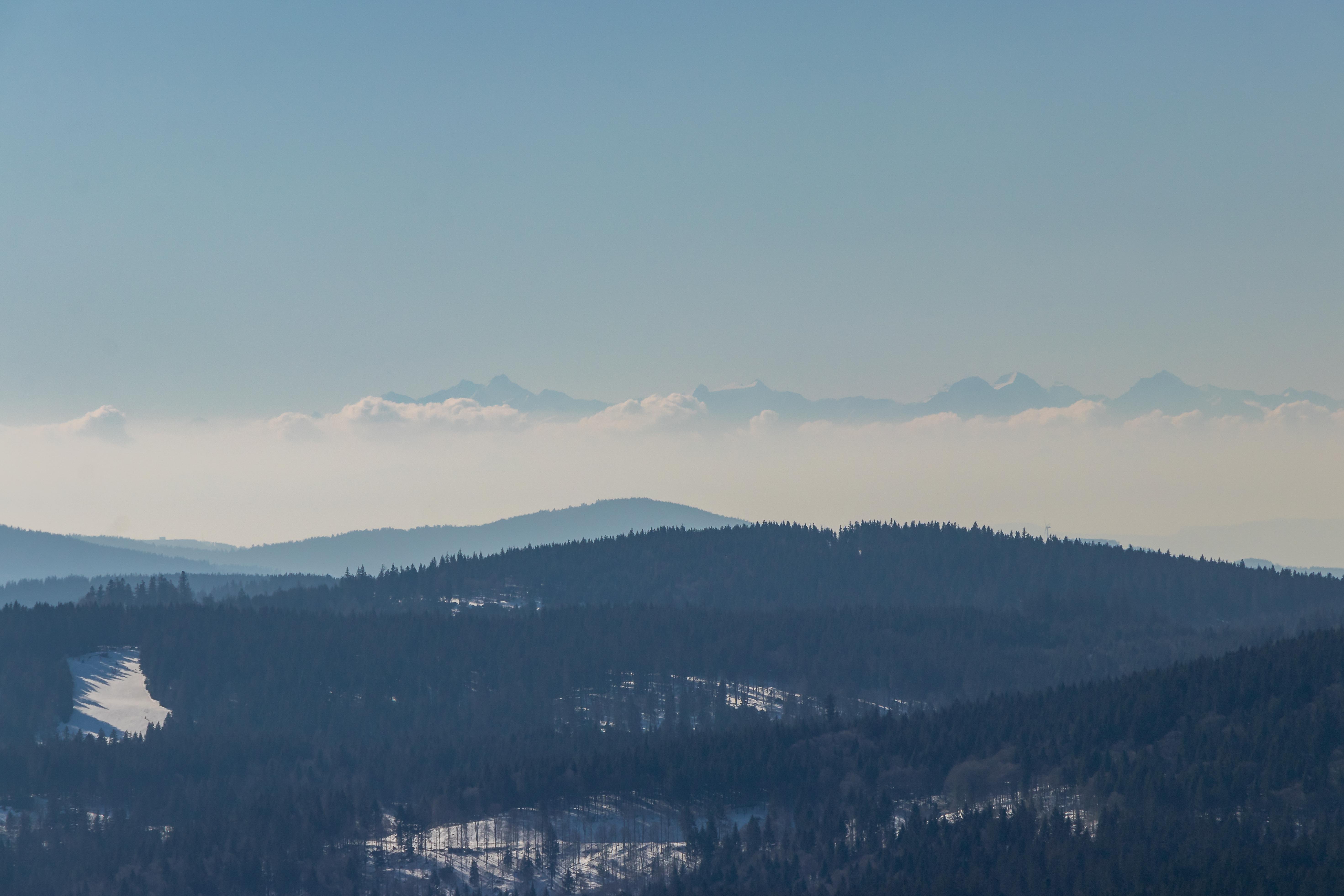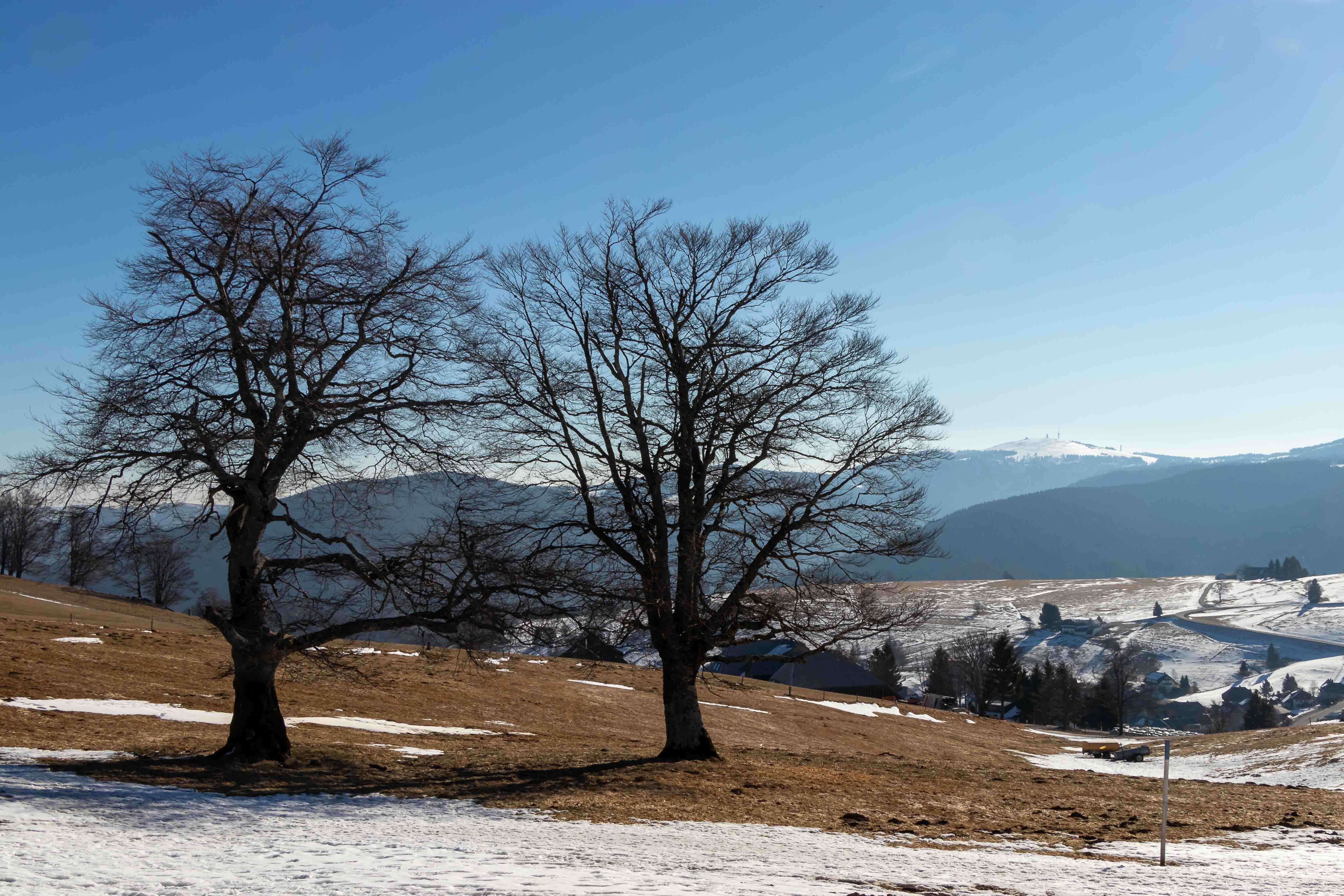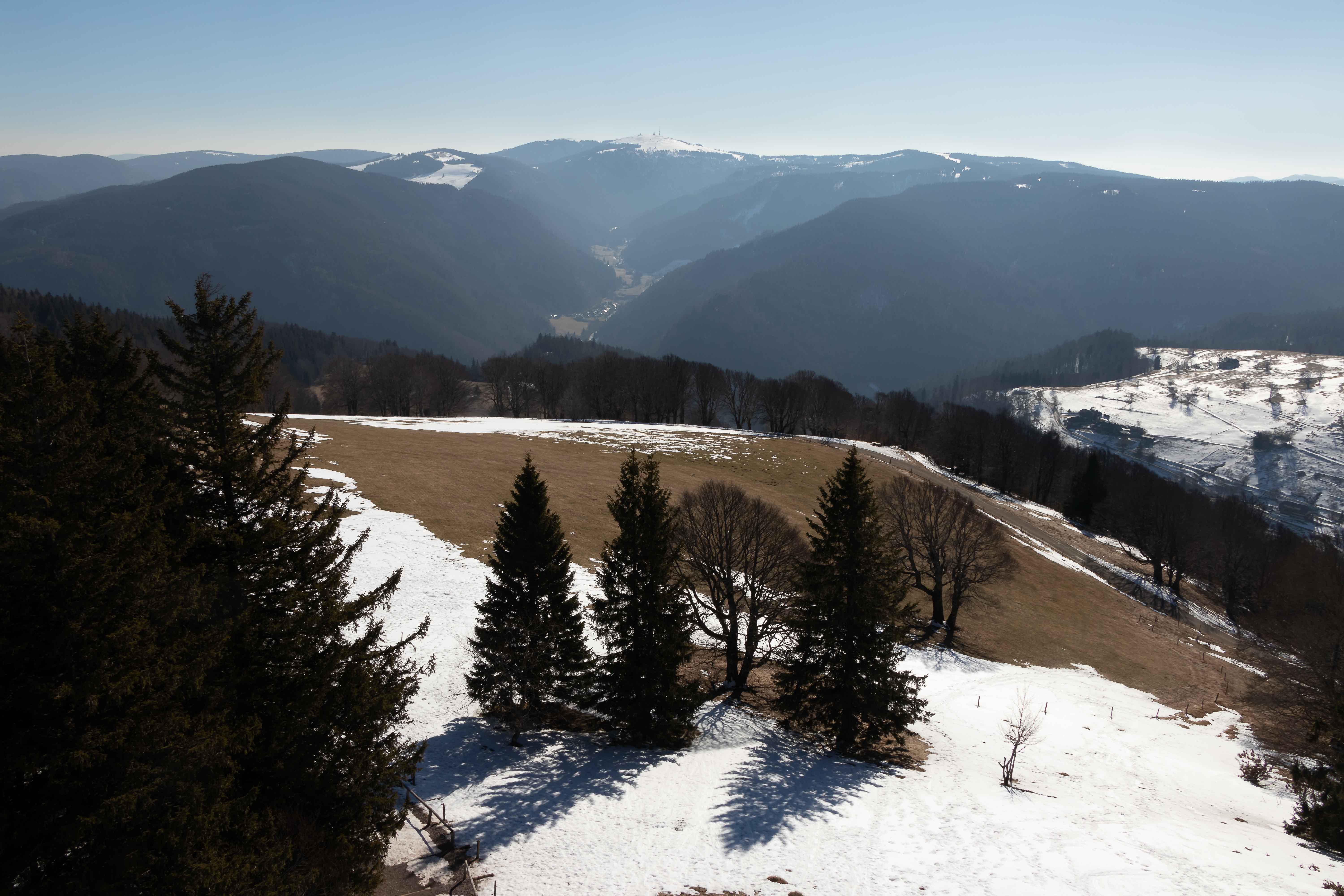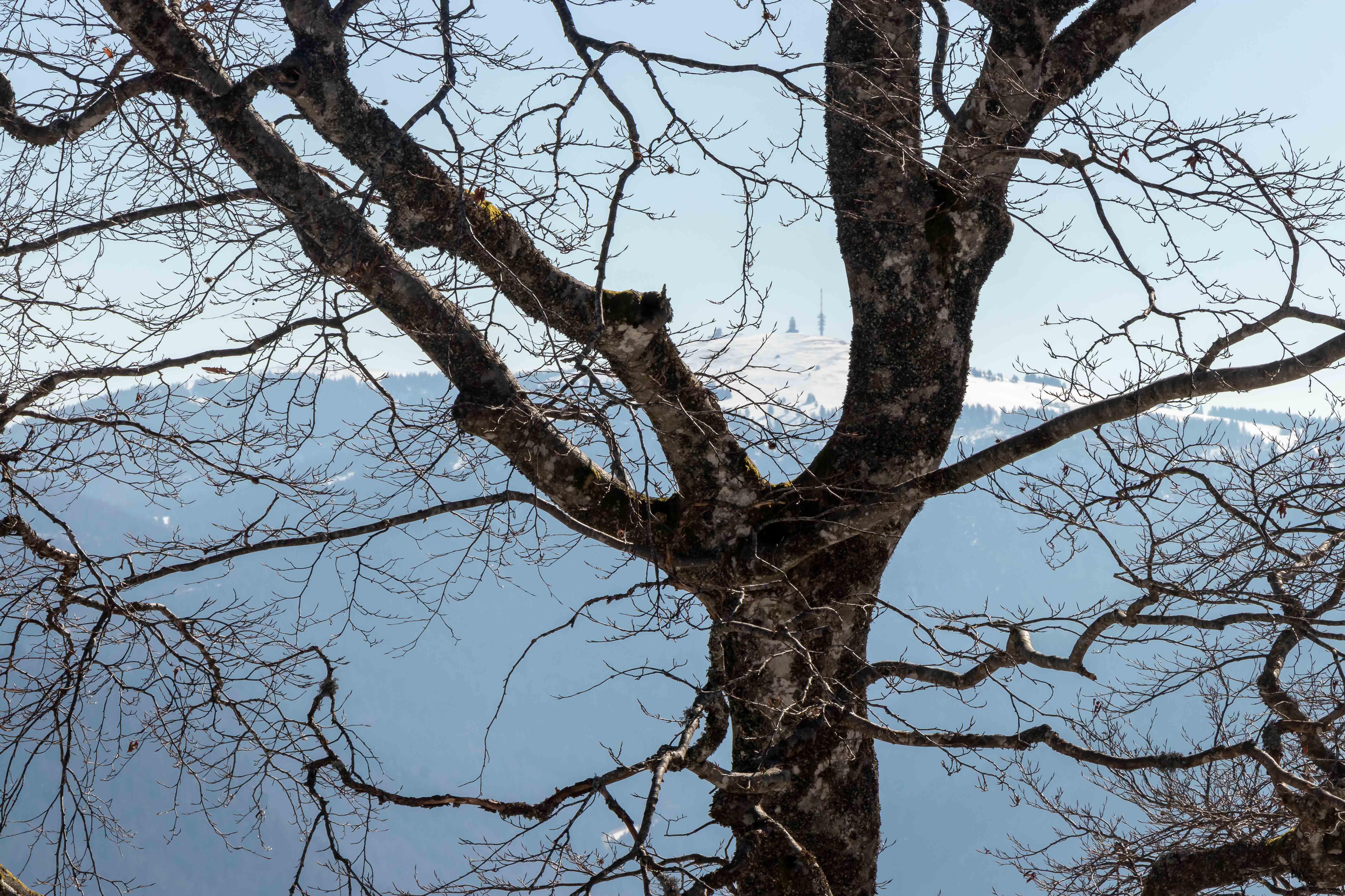 Ein starkes Hoch liegt über Europa und beschert uns blauen Himmel mit Sonnenschein, aber auch kalten Nächte. Auf den Gipfeln des Schwarzwaldes liegt noch viel Schnee. So ist der FELDBERG fest in der Hand der Skifahrer und alle Parkplätze sind besetzt. So kurven wir weiter zum SCHAUNINSLAND, der seinen Namen alle Ehre macht. Vom Aussichtsturm reicht der Blick bis in die Schweizer Berge. Jungfrau und Mönch sind trotz der dicken Inversion gut zu erkennen.