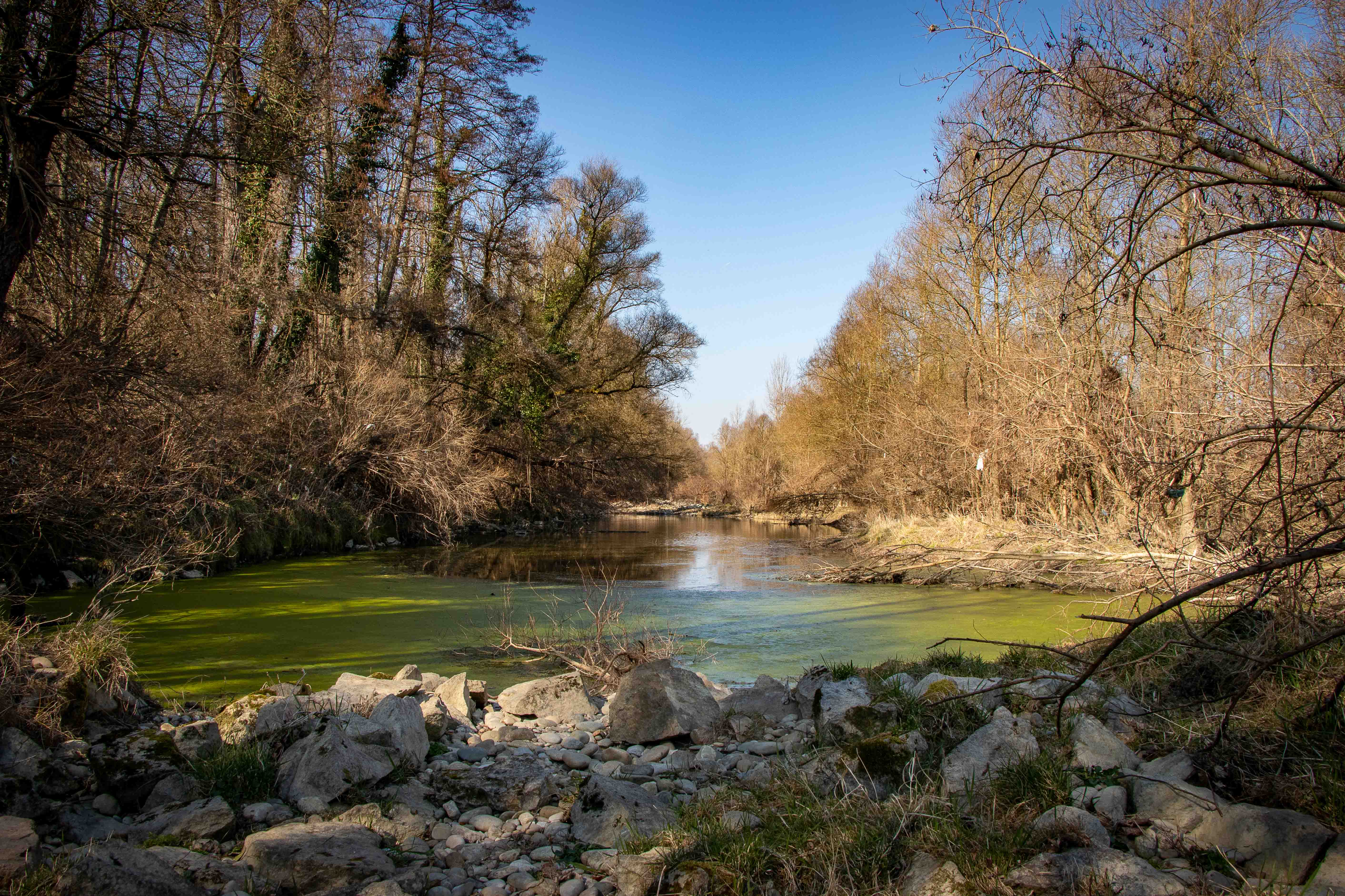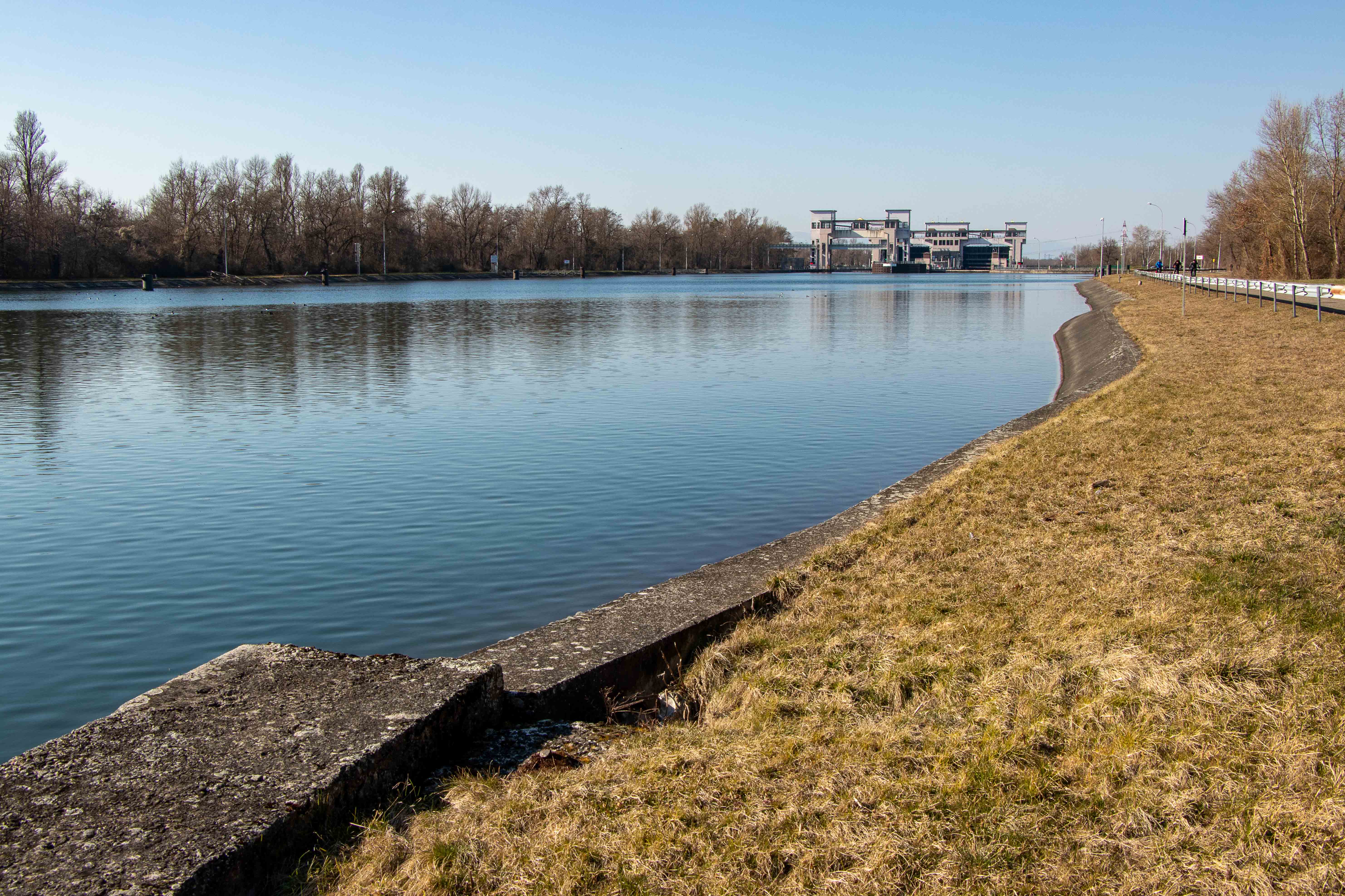 Die Berge des Schwarzwaldes hinter uns lassend, durchfahren wir die weite Ebene von Väterlichen RHEIN. Bei KEMBS erreichen wir FRANKREICH. Hier ist gut zu sehen, wie der einstmals weit mäandernde Strom in ein enges Korsett gezwängt wurde. Da der RHEIN immer schneller floss und sich tief eingrub, legte er Felsen frei. Um die Schifffahrt dennoch zu ermöglichen, schuf man einen breiten Kanal mit hohen Schleusen. Mittlerweile besinnt sich der Mensch und versucht zumindest einen kleinen Teil der früheren Auenwälder wieder herzustellen. Wie schön ist doch dieses Chaos der Natur im Vergleich zu den graden Linien des Menschen.