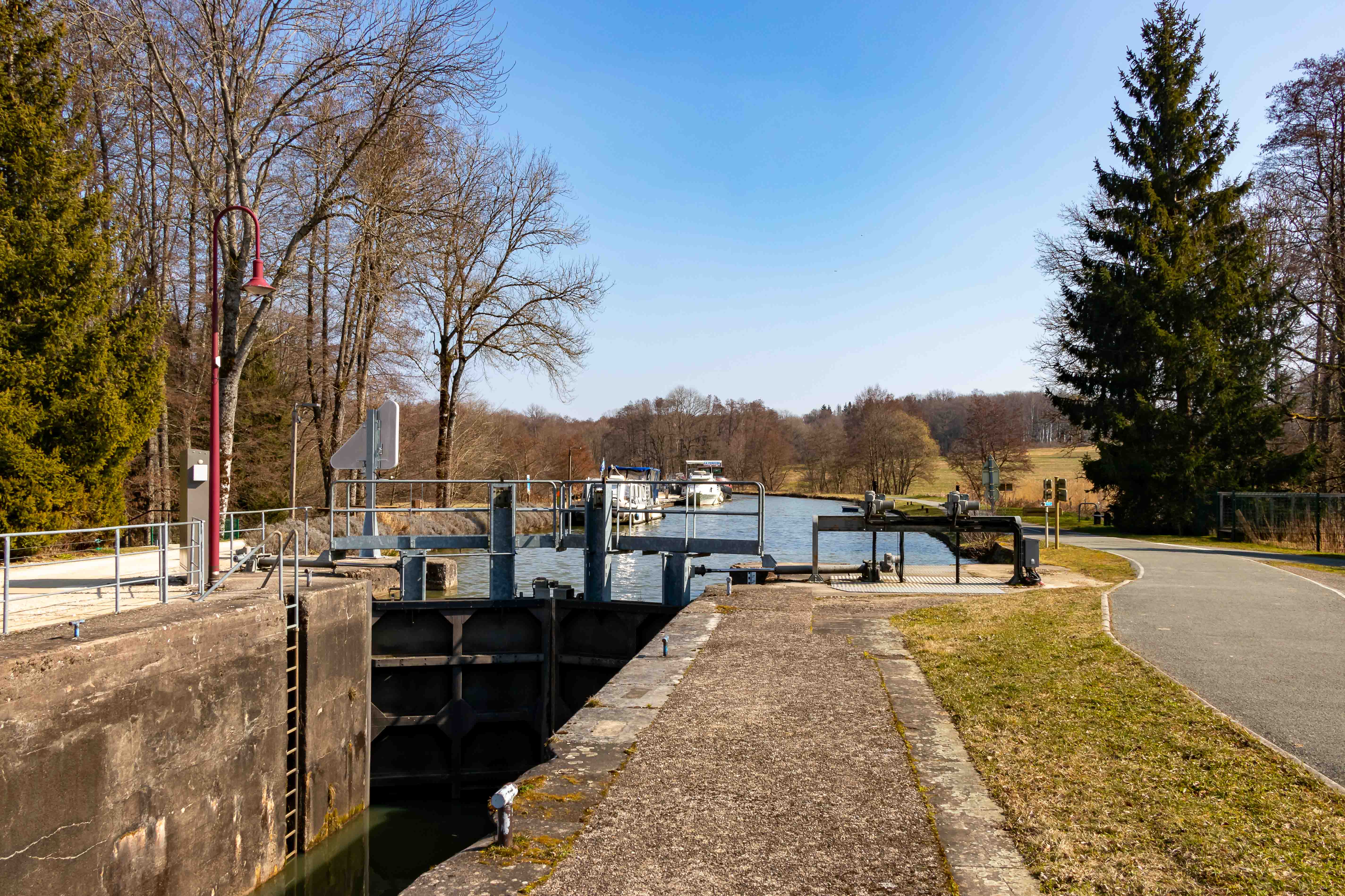 Frankreich hat im 19. Jahrhundert viele Kanäle gebaut, auch um den weiten Weg um die Iberische Halbinsel einzusparen. Wir folgen dem beschaulichen RHEIN–RHÔNE–KANAL. Bereits 1744 fanden erste Planungen statt und 1784 begann der Bau. Doch die Französische Revolution bremst den Ausbau, daher konnte er erst 1833 durchgehend befahren werden. Mit 112 Schleusen überwindet der Kanal rund 280 Höhenmeter. Jetzt dient die 237 km lange Wasserstraße nur noch den Freizeitkapitänen, da ihn nur kleinere, und damit unrentable, Frachtschiffe befahren können.