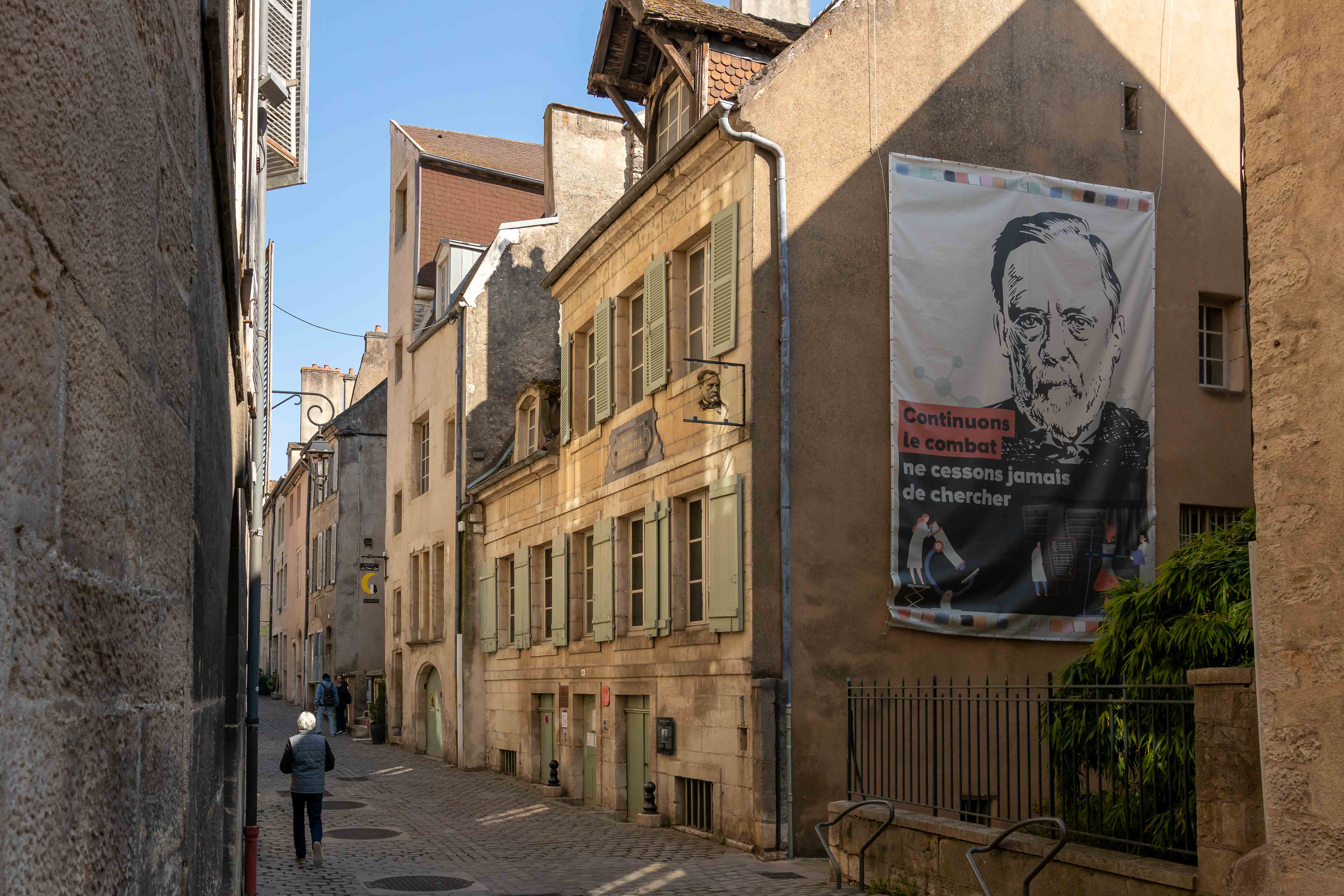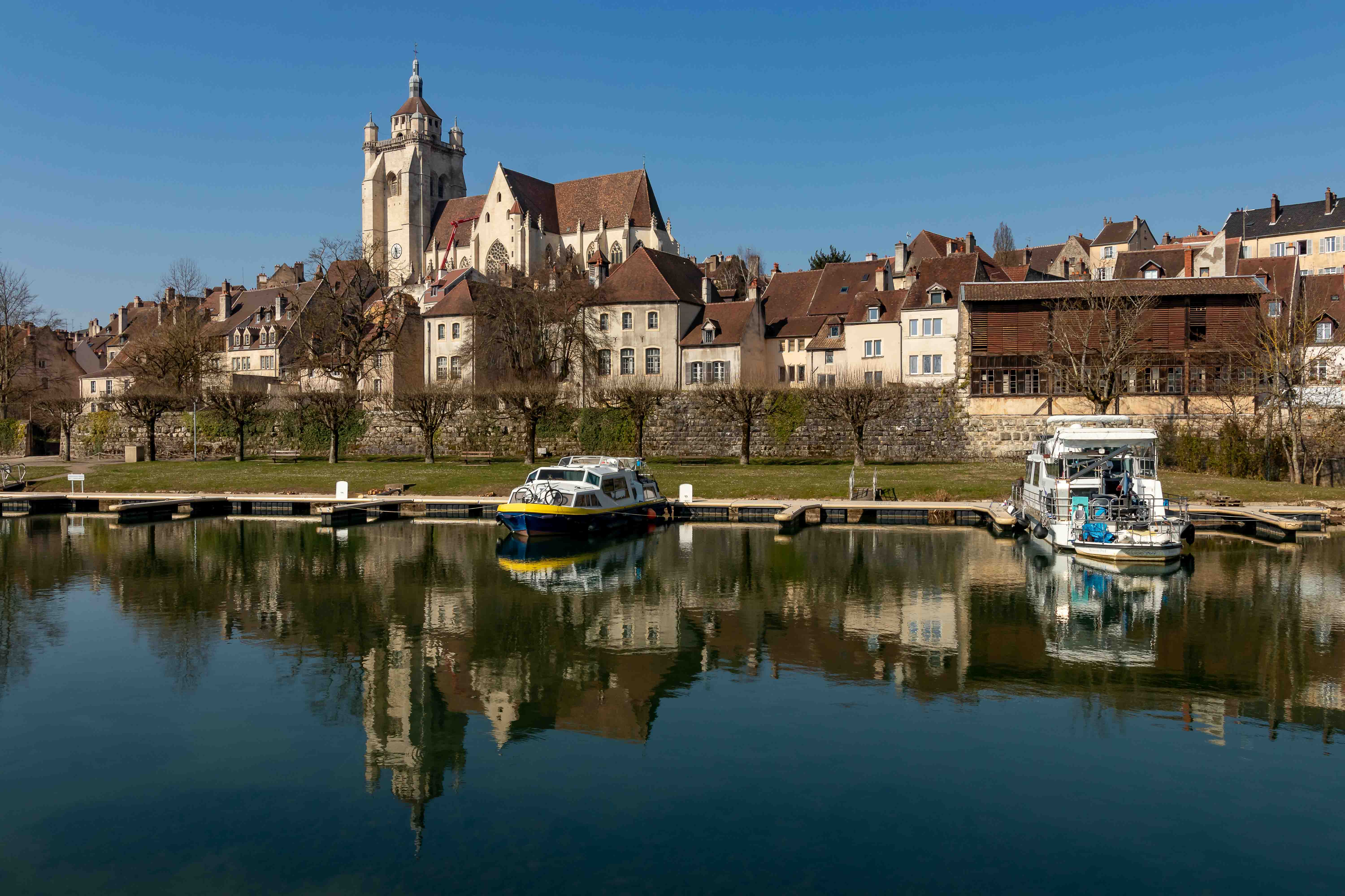 Wir folgen weiter dem beschaulichen RHEIN–RHÔNE–KANAL und dem gemütlichen LE DOUBS bis nach DOLE. Gegenüber der Altstadt, mit Blick auf die mächtige Kirche NOTRE–DAME und deren wuchtigen 75 m hohen Turm, parken wir auf einem großen Schotterplatz. Louis Pasteur, der Mitbegründer der medizinischen Mikrobiologie, ist hier am 27. Dezember 1822 geboren. Sein Geburtshaus steht noch in einer der vielen malerischen Gassen der mittelalterlichen Stadt.