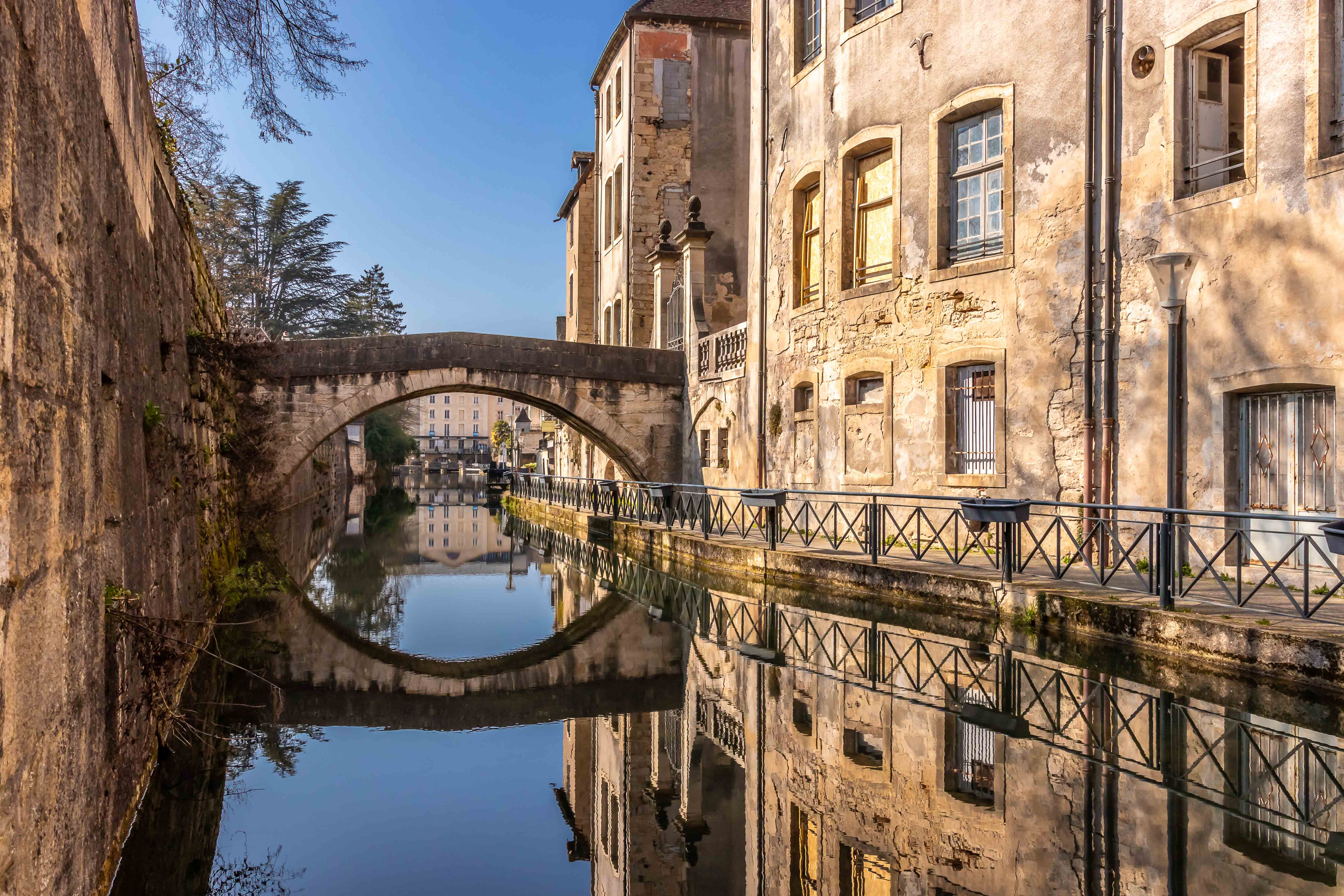 Einige Flüsse speisen den Kanal, so auch die ALLAINE, an dessen Ufer MONTBÈLIARD liegt. In einem Park steht eine riesige Sonnenuhr, auf einem Hügel thront über der Stadt die etwas eigenwillige ÉGLISE SAINT–MAIMBŒF.