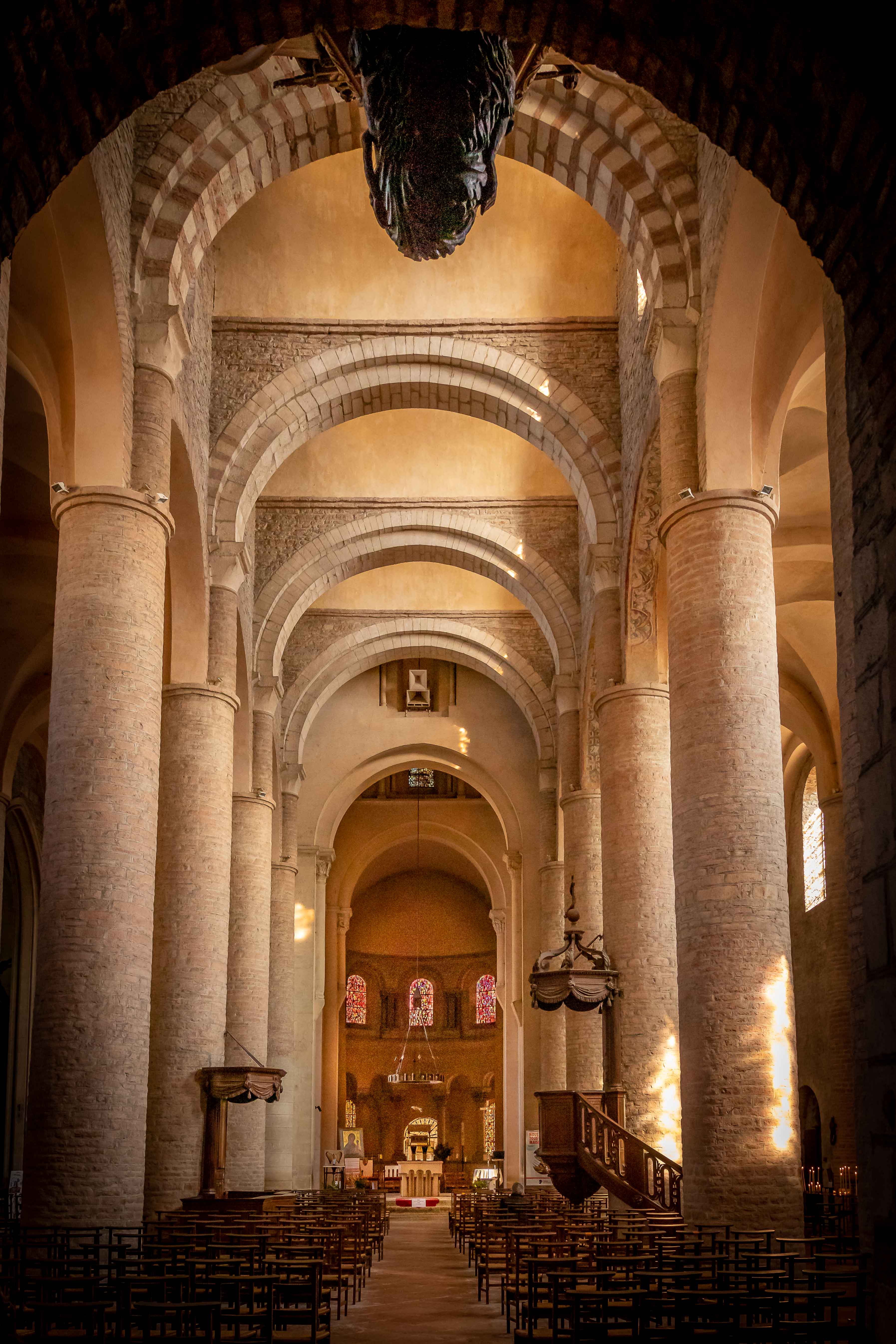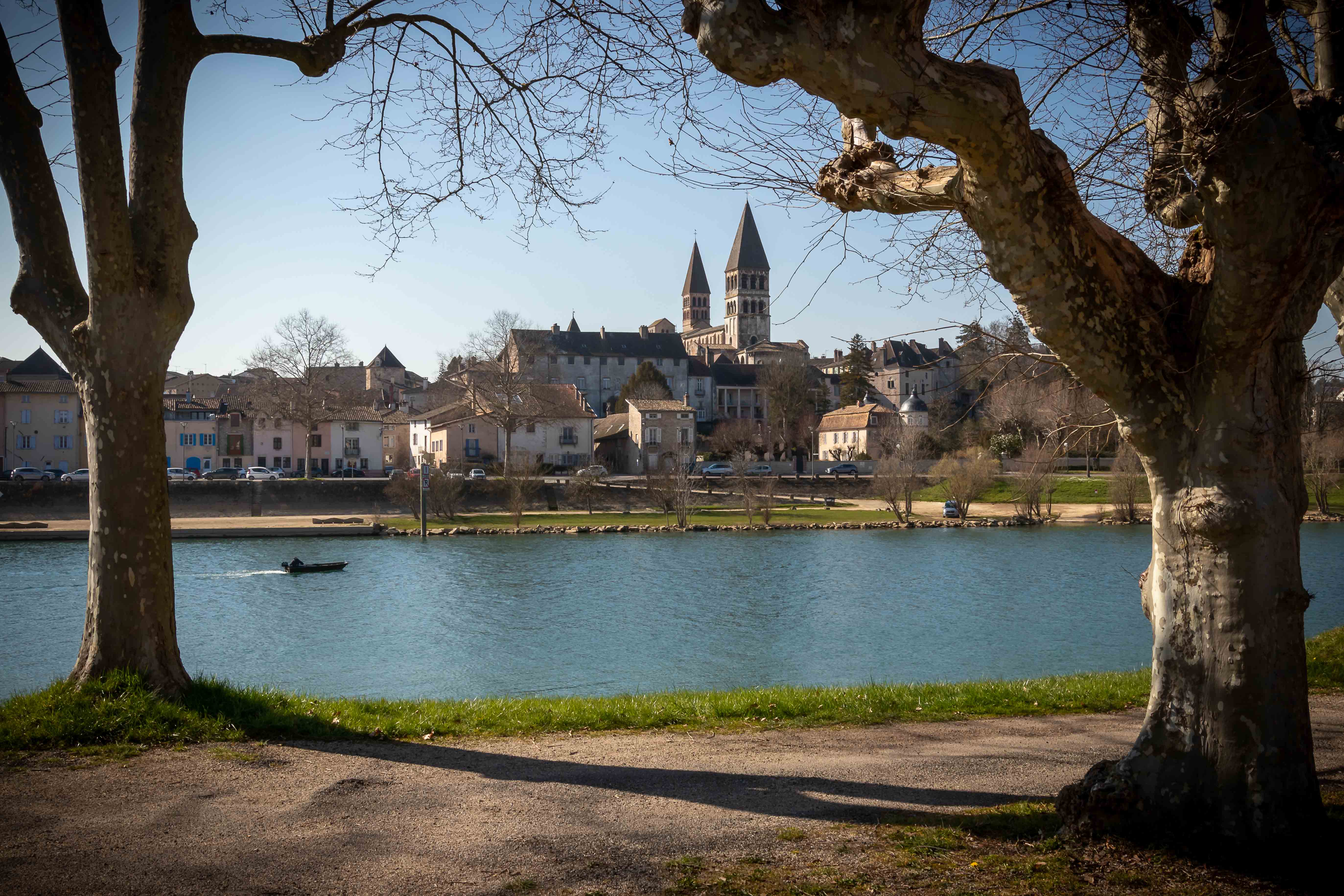 Wir verlassen den DOUBS und folgen ab VERDUN–SUR–LE–DOUBS der SAÔNE, die jetzt den RHEIN–RHÔNE–KANAL aufnimmt. Nach einer etwas monotonen Landschaft erheben sich bei TOURNUS die ersten Hügel. Die Stadt hat eine geschichtliche Bedeutung, da hier zahlreiche Urkunden ausgestellt wurden, so etwa durch Kaiser Karl II., auch der Kahle genannt. SAINT-PHILIBERT ist der älteste erhaltene romanische Großbau Frankreichs. Erhaben thront die Kirche über der alten Stadt.