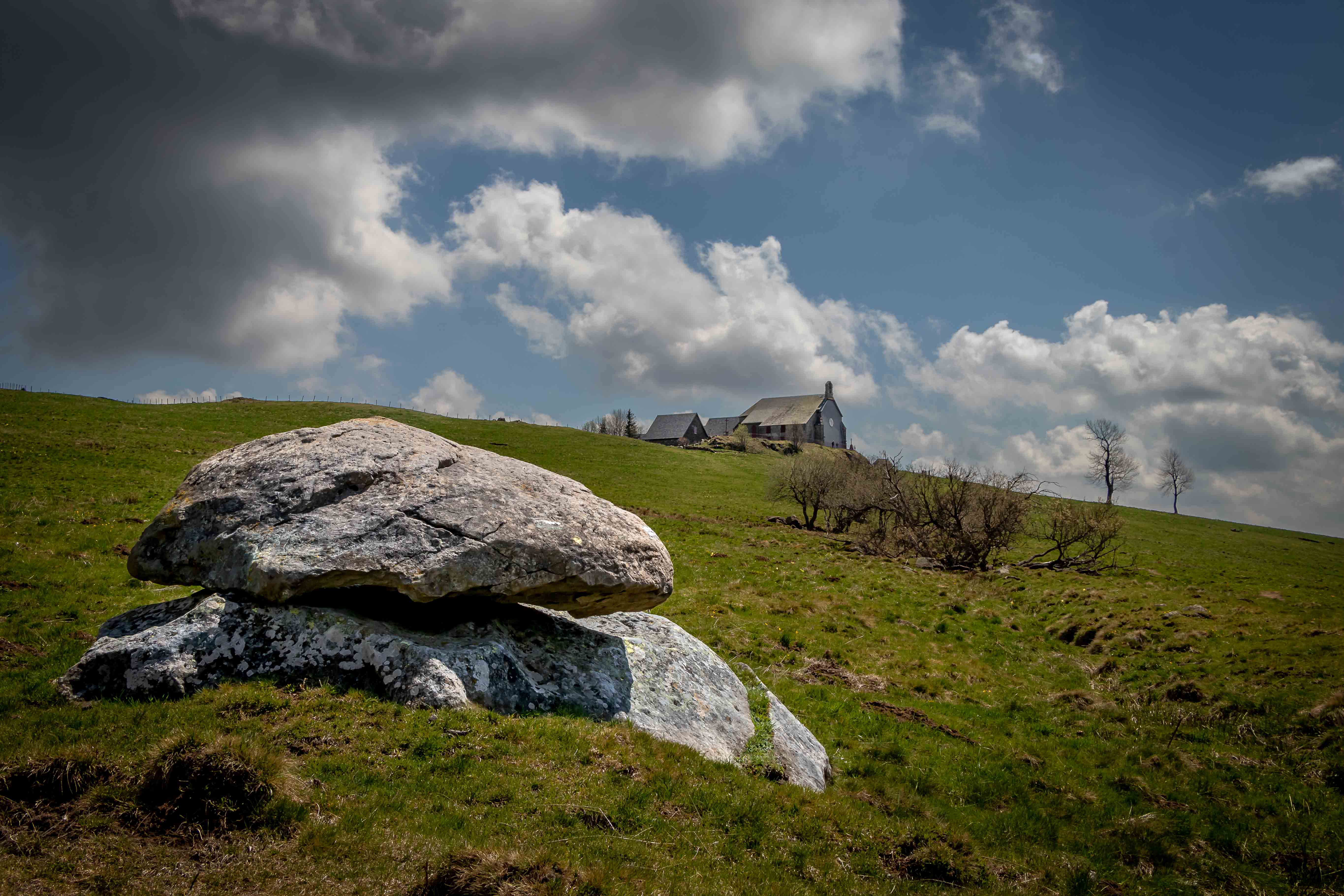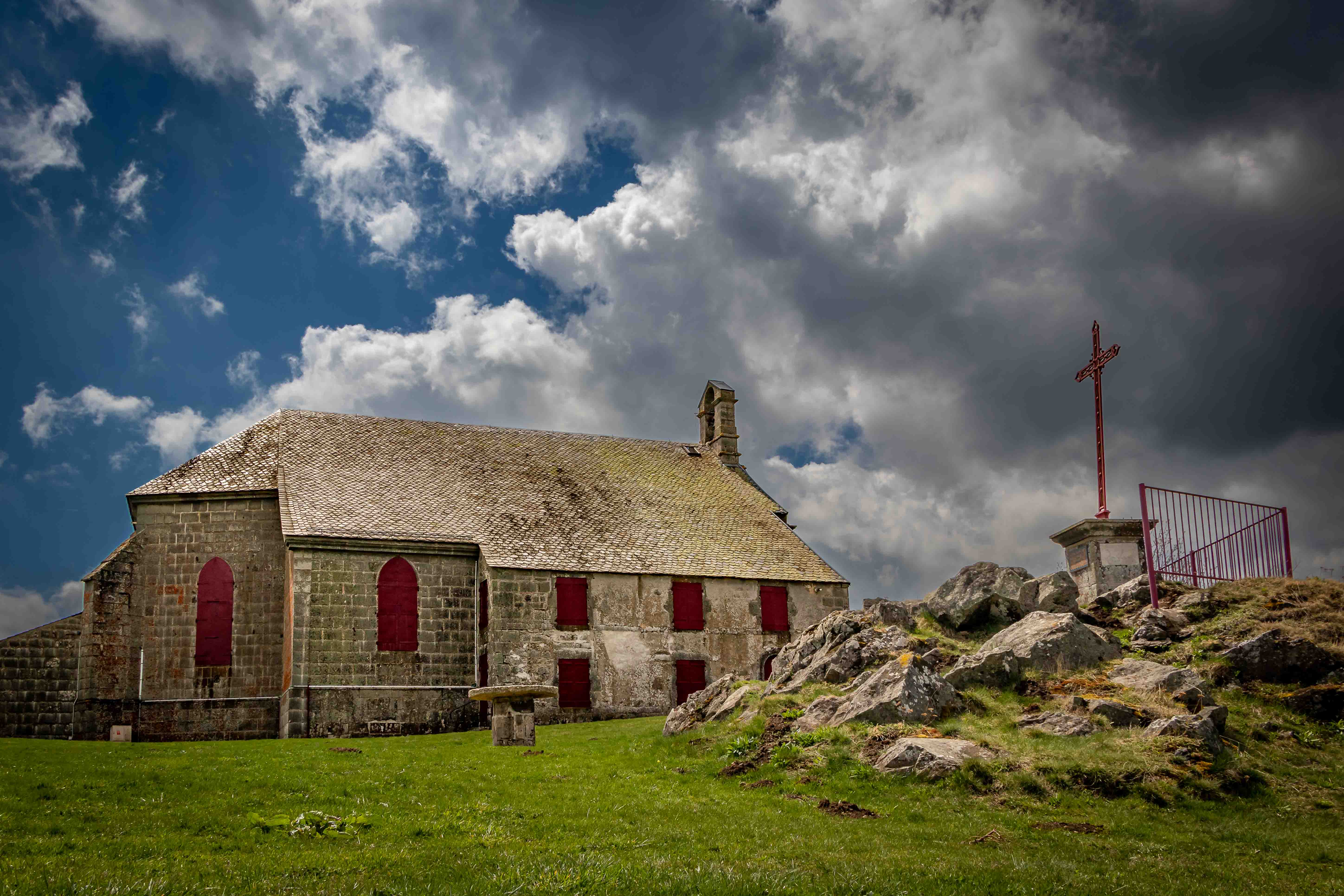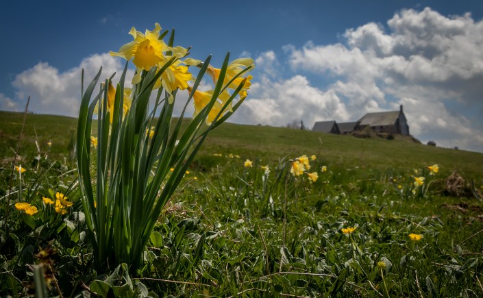 Weil es uns hier gar so gut gefällt, bleiben wir einen weitern Tag. Die kleine Chapelle Notre–Dame–de–Vassivière ist ein bedeutender Wallfahrtsort der Gegend. Im Sommer residiert hier eine schwarze Madonna. Jedes Jahr am 2. Juli tragen sie die Gläubigen vom nahen Besse hinauf auf die kleine, aussichtsreiche Anhöhe. Im 19. Jahrhundert nahmen an diesem Ritual bis zu 20 000 Pilger teil. Nach dem gestrigen nachmittäglichen Gewitter zeigt sich das Wetter wieder einmal von der heiteren Seite, wir hoffen auf die Fortsetzung in den nächsten Tagen.