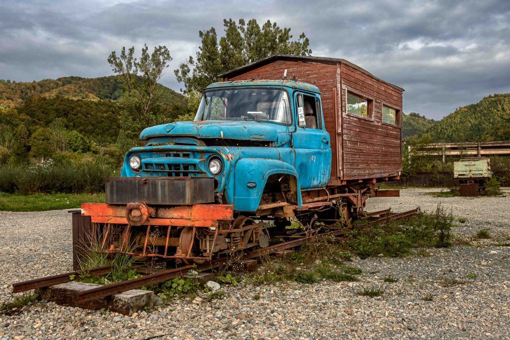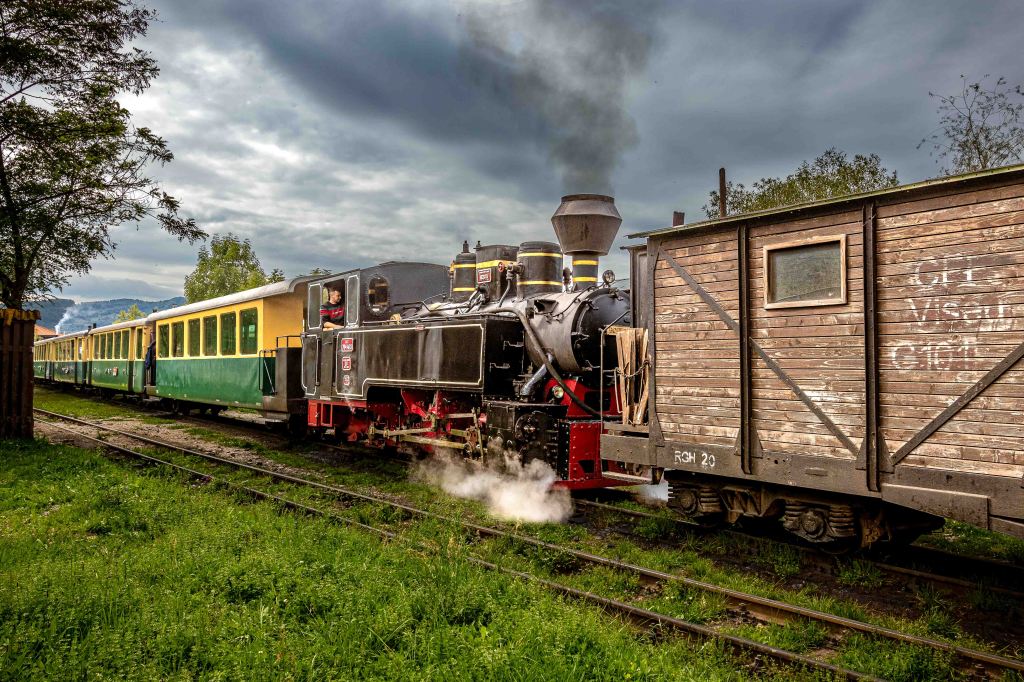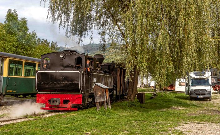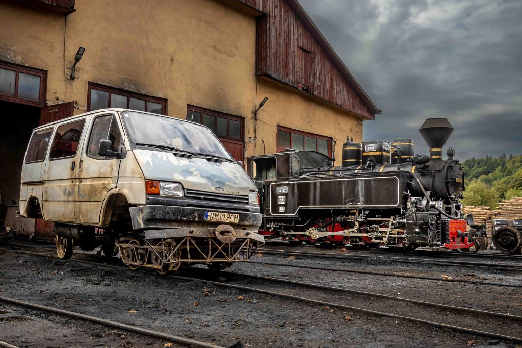 Als wir den Bahnhof der Waldbahn, auch Wassertalbahn“ genannt, erreichen, kehren vier Züge von ihrem Ausflug zurück. Schnaufend, stampfend und fröhlich pfeifend fahren die Dampfloks in den Bahnhof ein, der zugleich ein Museum ist, stehen hier doch einige seltsame Schienengefährte und nicht mehr betriebsbereite Dampfloks herum. Die „CFF Vișeu de Sus“ ist die letzte echte Waldbahn Europas und das auch noch mit original alten Dampfloks. Im Verkaufsbüro bekommen wir die Auskunft, dass am nächsten Tag, einem Montag, um 10 Uhr auf Gleis 1 ein Zug losfährt und wir hier am Gelände auch gerne Übernachten können.