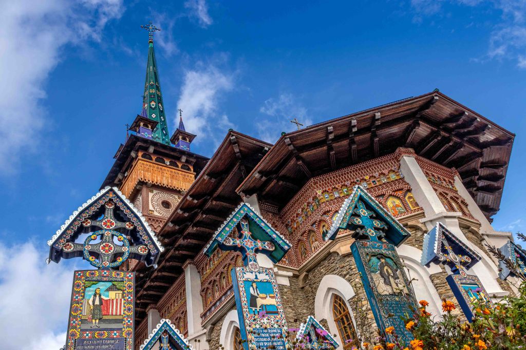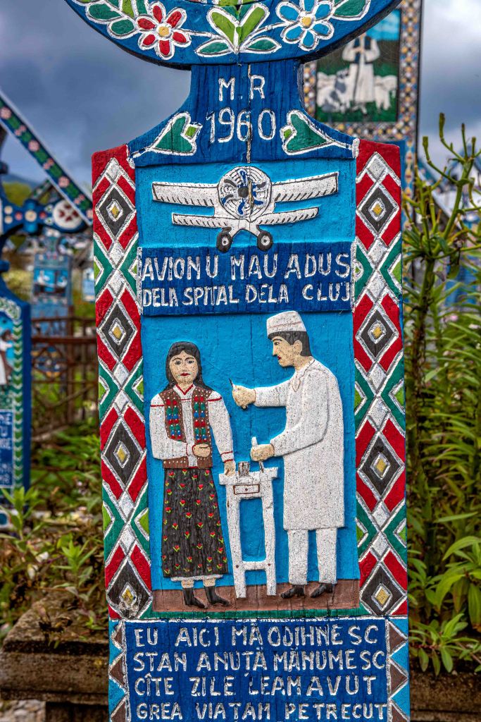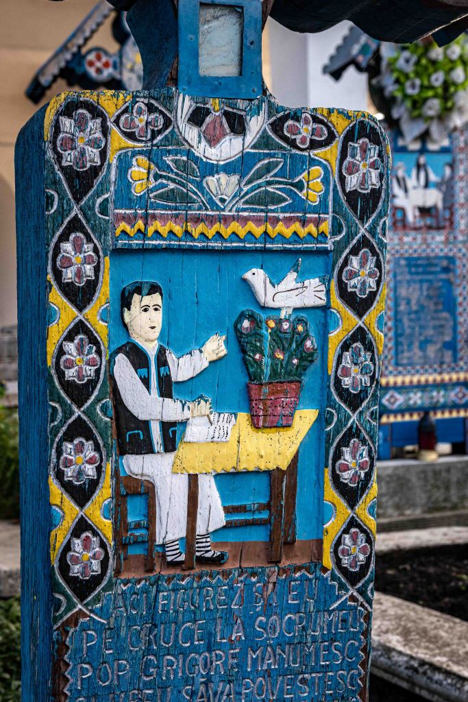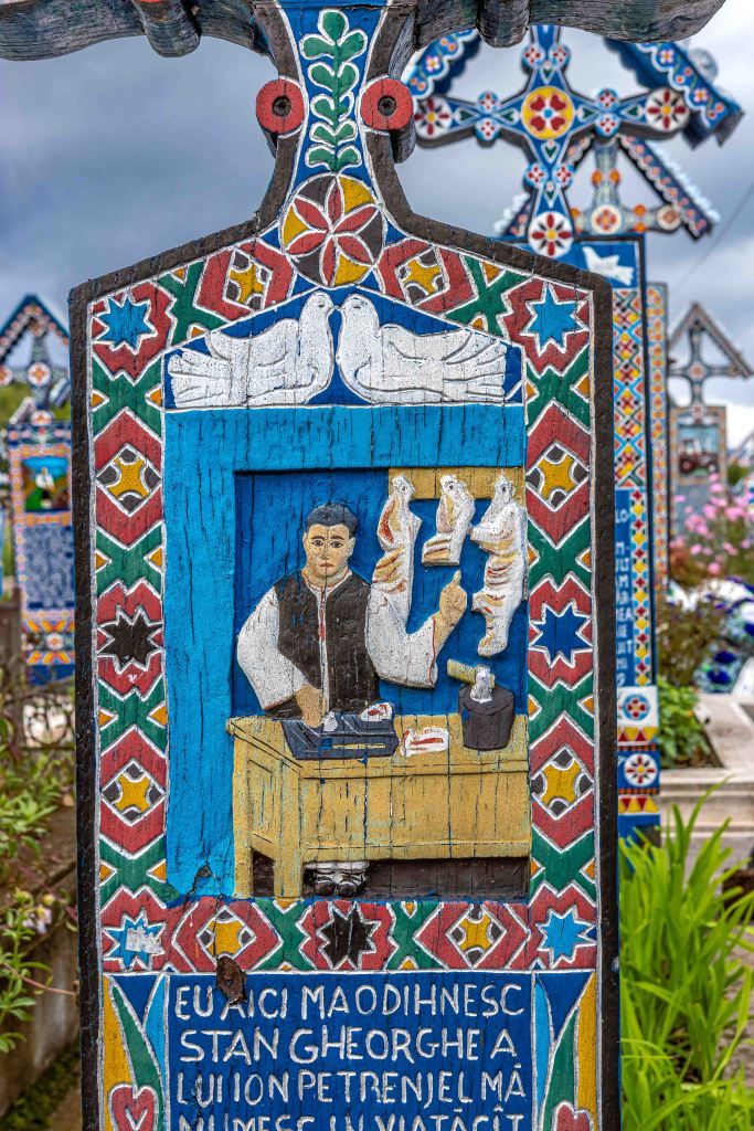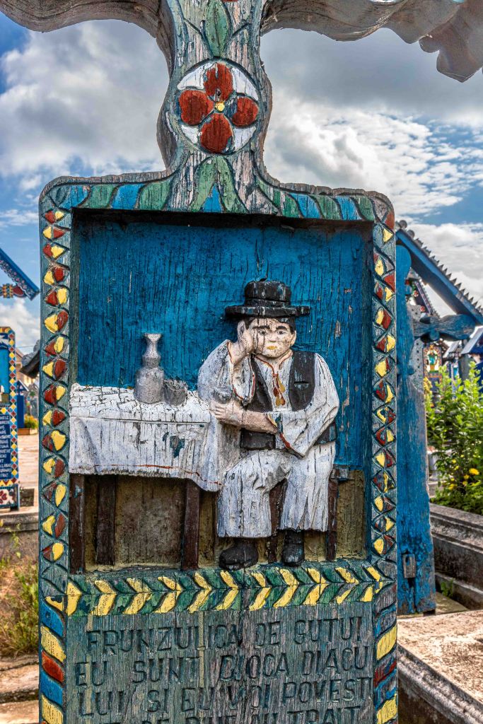 Besonders über alte Friedhöfe sind wir schon immer gerne spaziert: Wie alt wurden die Leute hier? Welche Namen trugen die Menschen? Welche Geschichten erzählen die Inschriften? Ein ganz ungewöhnlicher Friedhof ist der in Săpânța. „Vesel“ bedeutet: fröhlich, glücklich oder auch lustig. Alle diese Namen könnte der Friedhof tragen. Der Dorfkünstler Stan Ion Pătraș besann sich der Tradition der Dakar, die den Tod nicht als bedauernswerten Endpunkt sahen. Ab 1935 schnitzte und bemalte er die Holzkreuze der Verstorbenen und lässt ihnen ihre Geschichte in Wort und Bild erzählen. Ein Nachfolger führt die Tradition weiter und auch die alten, meist blauen Kreuze, werden liebevoll restauriert. Leider können wir die Texte nicht übersetzten, doch manche der Verstorbenen sollen ihre Untreue beichten, andere geben eine letzte Liebeserklärung ab, erzählen von ihrem Beruf oder gestehen, zu tief ins Glas geschaut zu haben (der Teufel zupft schon an seinen Füßen).