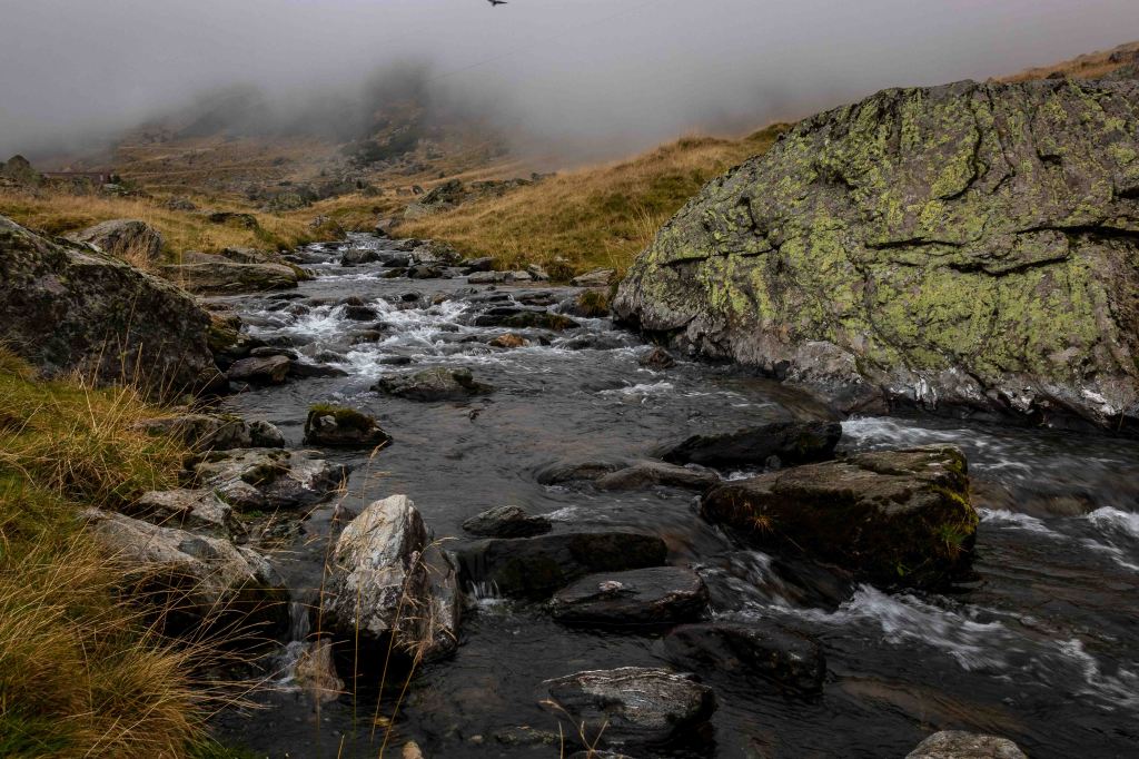 Schon einmal sind wir wieder in den Norden abgebogen, nachdem wir auf der TRANSALPINA in Nebel und Kälte standen und wir auf der fast genauso hochreichenden TRANSFĂGĂRĂȘAN kein besseres Wetter erwarteten. Heute versuchen wir es trotz der dunklen Wolken rein zweites Mal über den Kamm des FĂGĂRĂȘ-Gebirges zu fahren. Doch oberhalb der CASCADA BĂLEA stehen wir in den schnell heraufziehenden Wolken und es bläst uns ein eiskalter Wind um die Ohren. Um die Mittagszeit beschließen wir, zurück zum KLOSTER KREUZ zu fahren. Dort genießen wir den restlichen Tag in der Sonne, während die hoch aufschießende Wolken über den Bergen weiterhin dunkel bleiben.