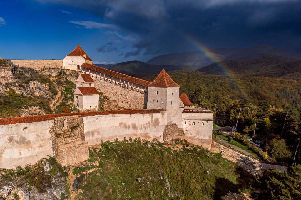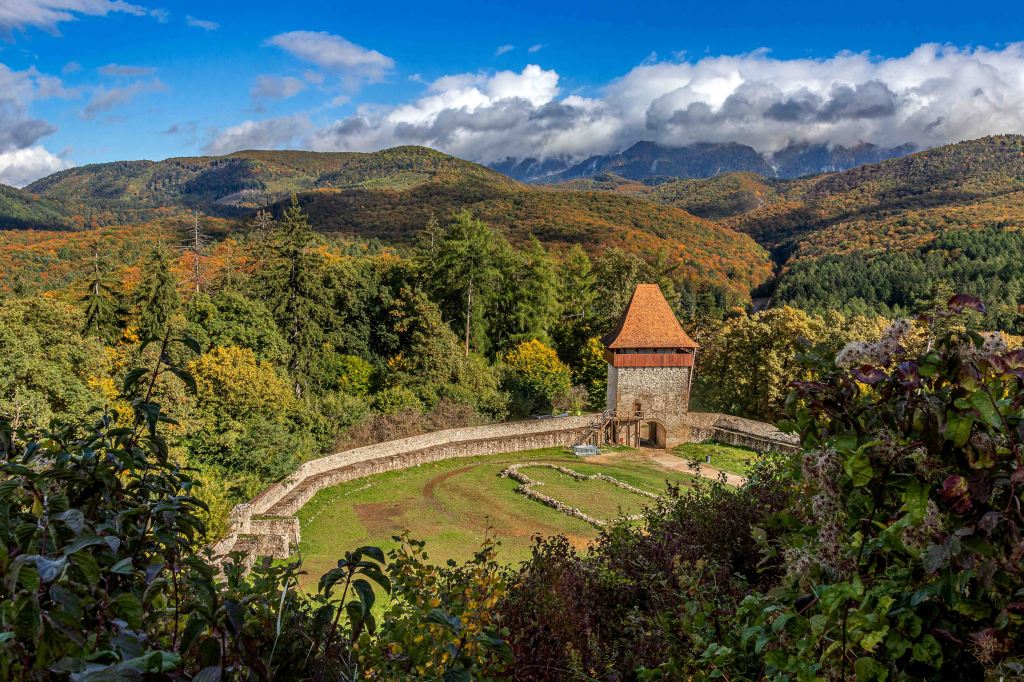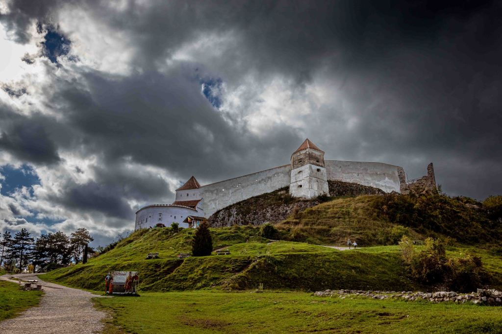 Das Wetter will nicht so wie wir, also bleibt uns nur, wieder Burgen und Schlösser zu besichtigen. Bis in den frühen Nachmittag hinein regnet es wie aus Kübeln, die Karpaten sind nur zu erahnen. Die Hoffnung, weiter im Osten scheint die Sonne, erfüllt sich leider nicht. Unterhalb der Burg von RĂȘNOV bleiben wir mitten im schon herbstlichen Wald stehen. Peter erkundet die, leider wegen Renovierungsarbeiten geschlossene, Burg während der wenigen sonnigen Momente. Der Deutsche Ritterorden gründete im 13. Jahrhundert die Burg, um die Bevölkerung vor den Raubzügen der Türken und Tartaren zu schützen.