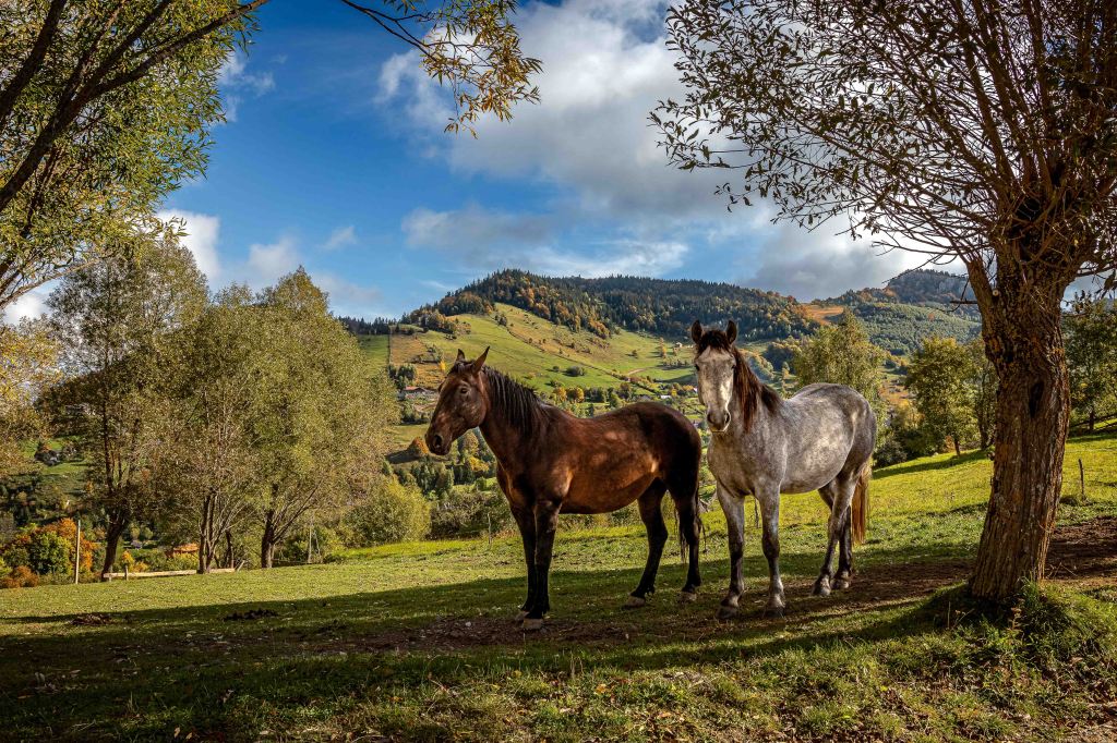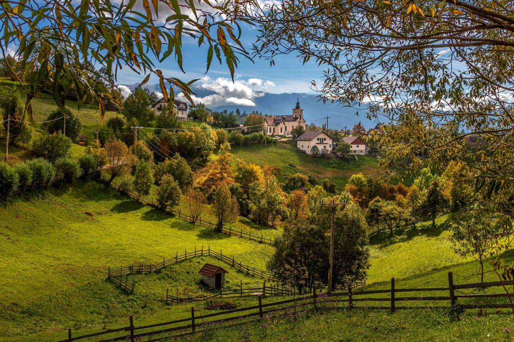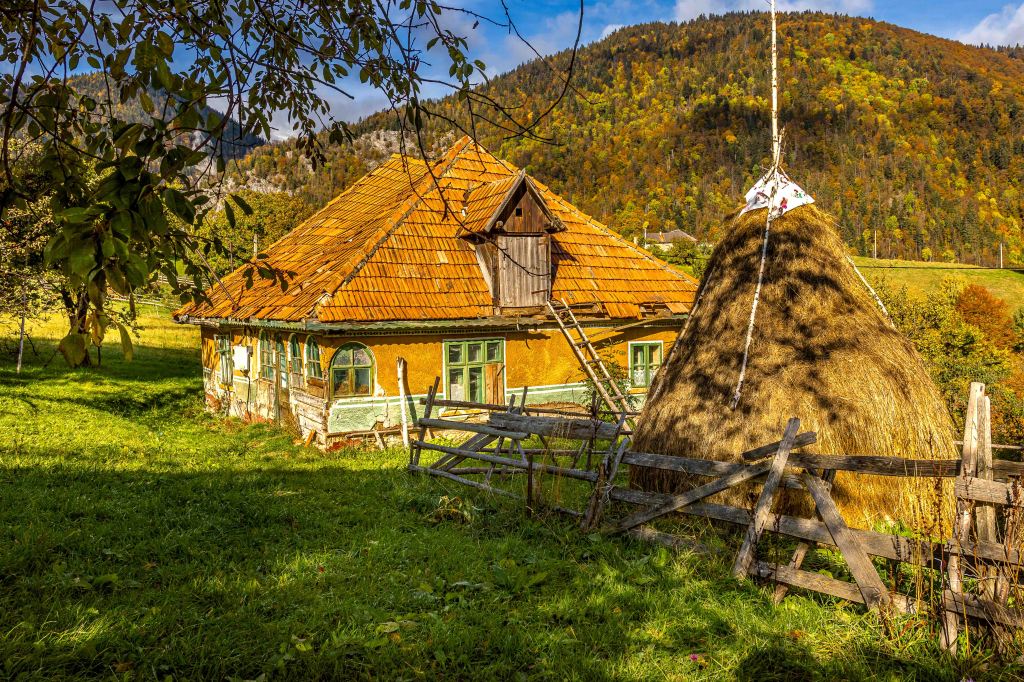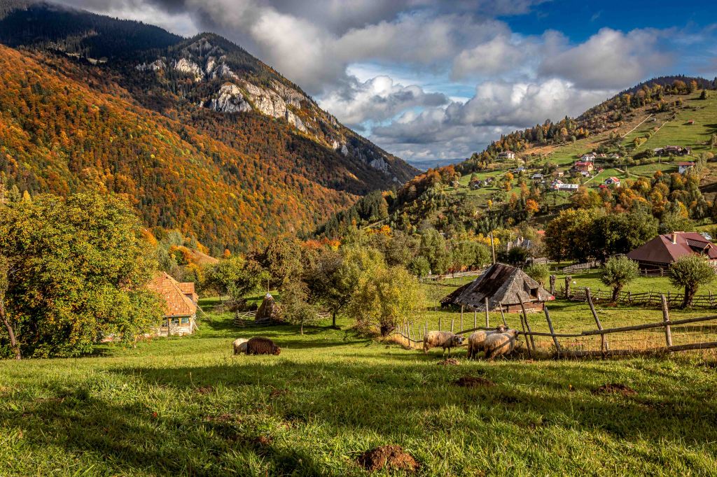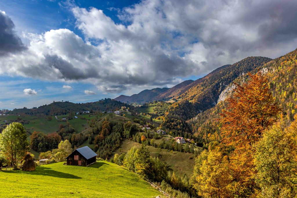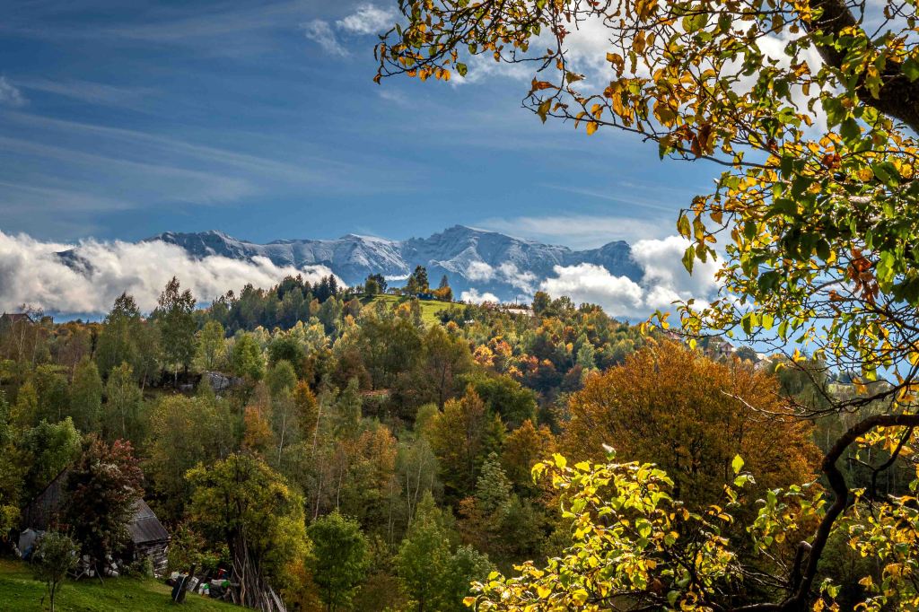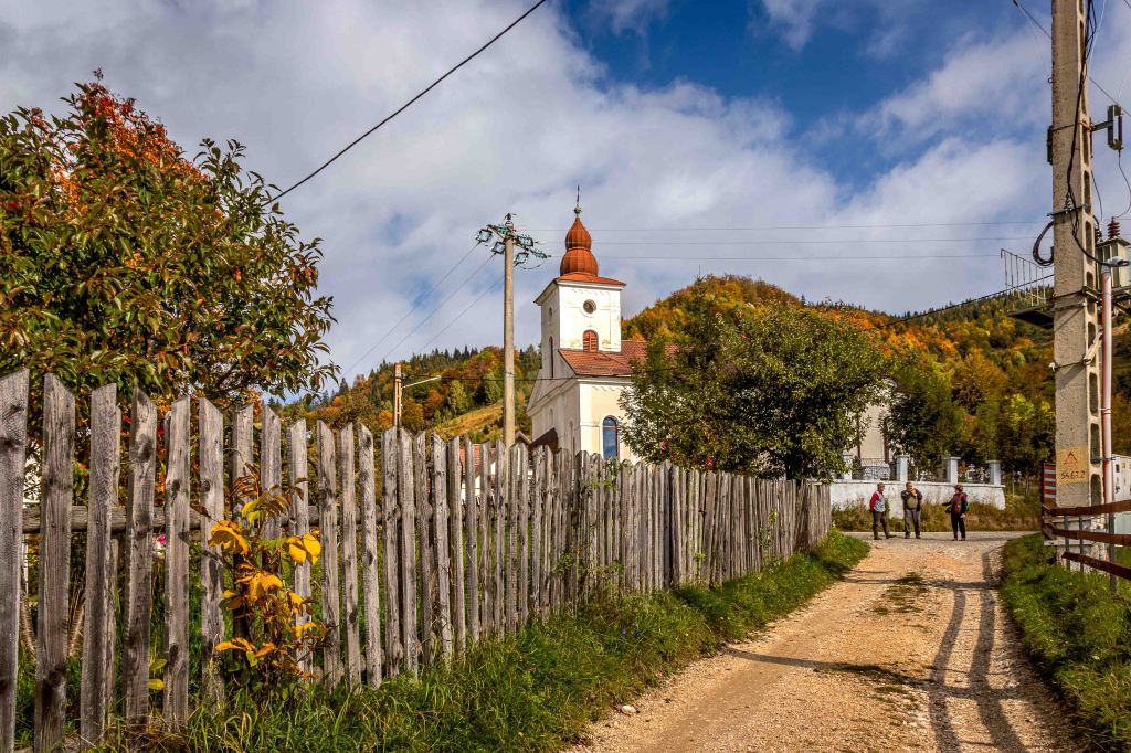 Endlich haben wir das ersehnte sonnige Herbstwetter, vielleicht wird es ja noch ein goldener Oktober. Nachdem die Erdstraße hinauf in die Streusiedlung Magură in schlechtem Zustand sein soll, wandert Peter lieber zu Fuß hinauf. Nachdem der Eintritt von 5 Lei für den Piatra-Craiului-Nationalpark gezahlt ist, kann es losgehen. Durch den herbstlich leuchtenden Wald sind die ersten Wiesen und Häuser nach einer gemütlichen Stunde erreicht. Zwischen den vielen alten Häusern, manche davon noch bewohnt, haben sich viele neue Häuser geschoben. Nun lebt der Ort nicht nur von Obst, Honig und Landwirtschaft, sondern auch vom Tourismus. Der Ort ist, mit einigen Pensionen, Ausgangspunkt für Viele Wanderungen ins Königsteinmassiv.