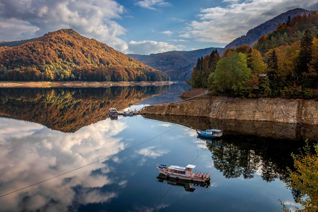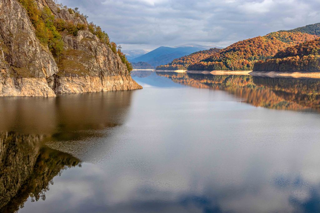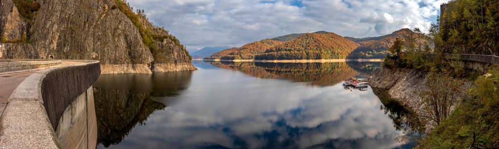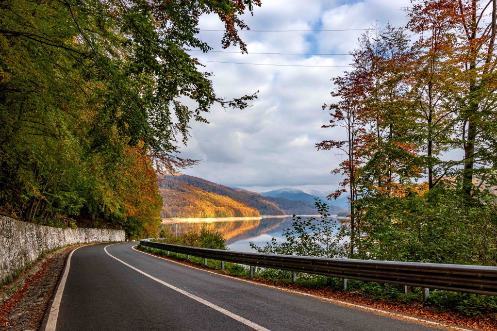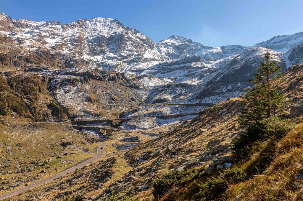 Der dritte Anlauf gelingt: Bei schönstem Herbstwetter können wir die Hochgebirgsstrecke Transfăgărășan befahren. Aber erst ist einmal Geduld angesagt. Über viele Kilometer zieht sich die Straße durch dichten Wald kurvenreich, auch mit einigen Schlaglöchern bestückt, langsam hinauf. Den Lacul Vidraru, spiegelglatt und ohne eine Welle, sehen wir nur kurz an der riesigen Staumauer. Dann hoffen wir auf Bären, doch wir sehen keinen einzigen.