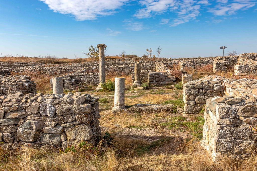 Weiter im Süden, am größten rumänischen See, dem Lacul Razim, erkunden wir wieder einmal alte Steine, diesmal von Menschen aufgeschichtet. HISTRIA gilt als die älteste rumänische Siedlung und wurde als Kolonie der ionischen Stadt Milet Mitte der 7. Jh. v.u.Z. gegründet. Dann kamen die Skythen, ein Reiternomadenvolk aus dem heutigen Südrussland und der Ukraine. Alexander der Große verleibte es Makedonien ein, bevor die Römer es 72-71 v.u.Z. eroberten. Die hier vorherrschenden Nordostwinde erzeugen eine starke Strömung, die bereits um die Zeitenwende zur Verlandung des großen Hafens führte, sodass größere Schiffe nicht mehr in die Lagune fahren konnten. So ging die wichtigste Wirtschaftsgrundlage verloren und die Stadt verlor an Bedeutung. Obwohl die Ausgrabungen auch heute noch fortgeführt werden, ist nur ein kleiner Teil der einst bedeutenden Stadt erforscht.